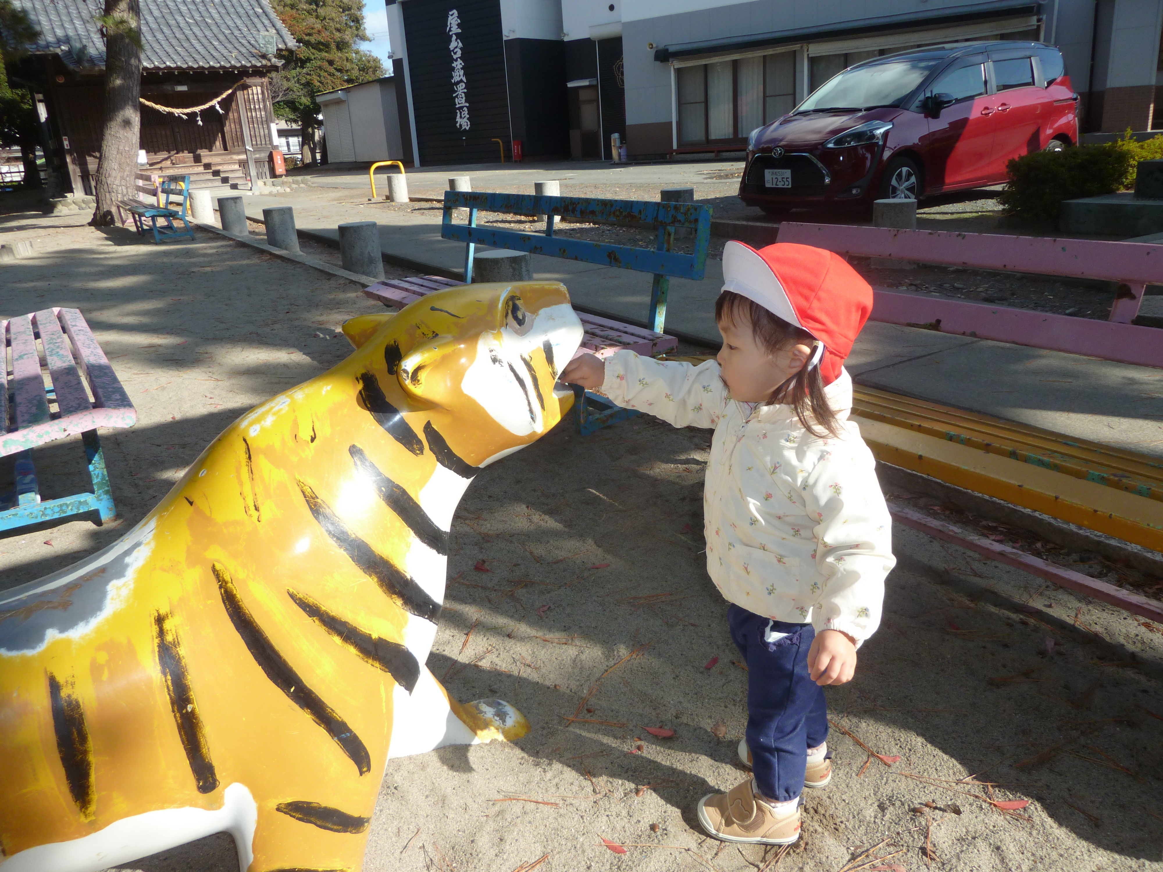 「アンパンマン」や「しょくぱんまん」のスプリング遊具に乗って楽しんだり、すべり台やトラさんに「ごはんだよ」とエサをあげたりする姿に思わずほっこりしました♡