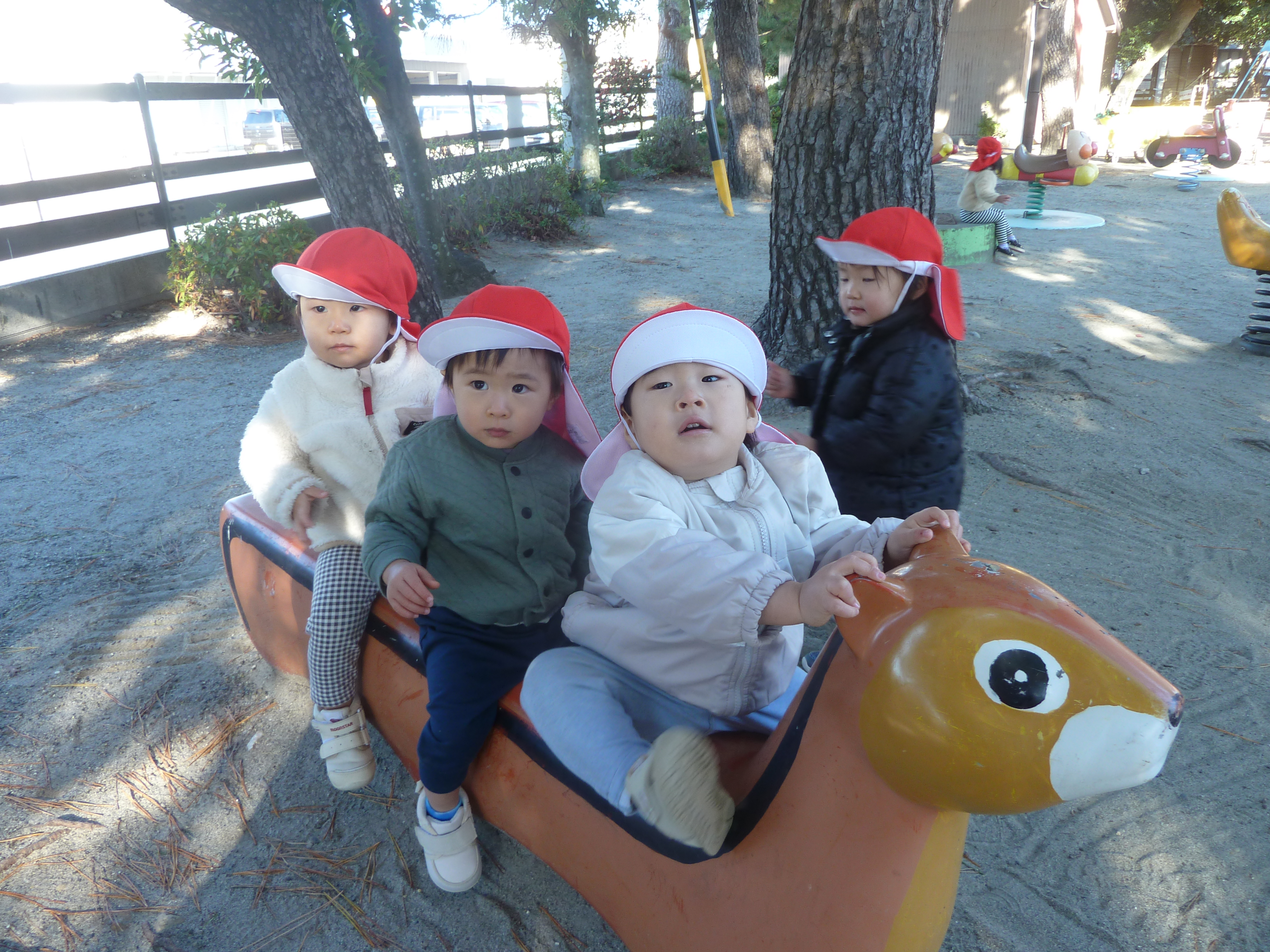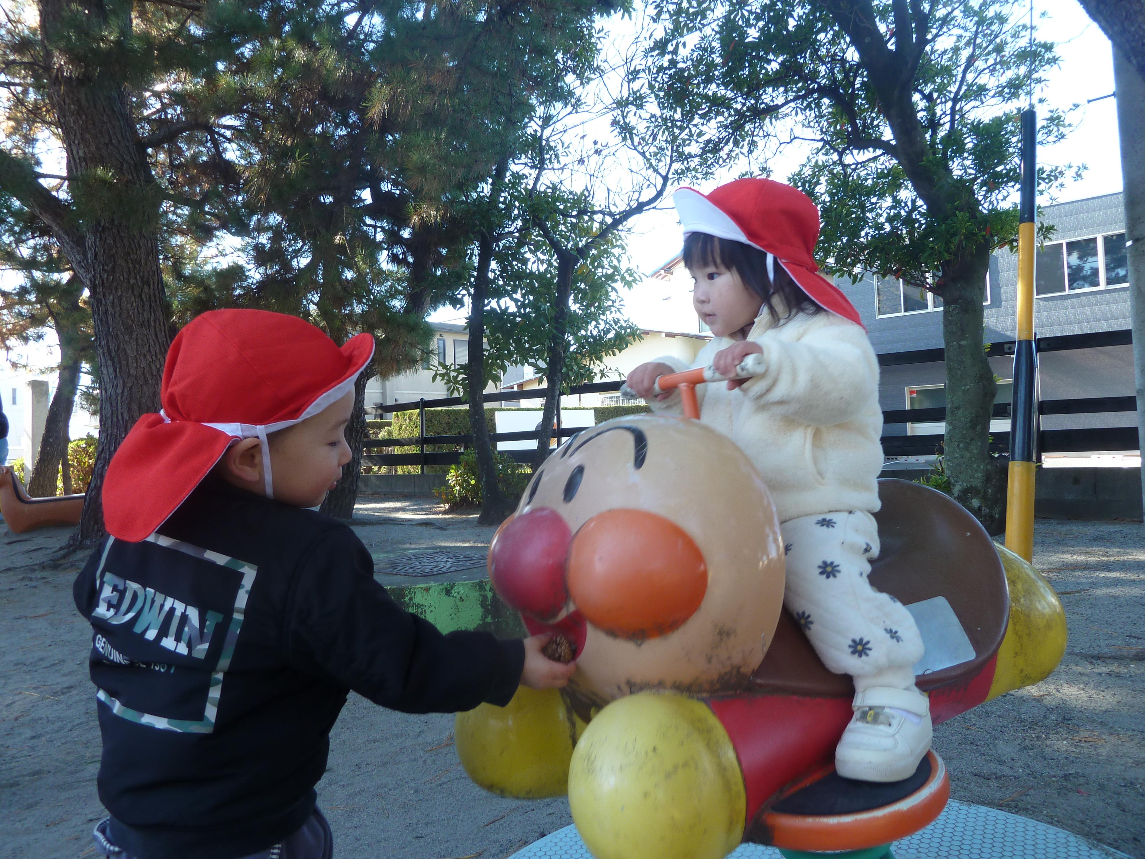 「アンパンマン公園に行くよ!」と伝えると、「やった~!!」と大喜びのたんぽぽ組さん。