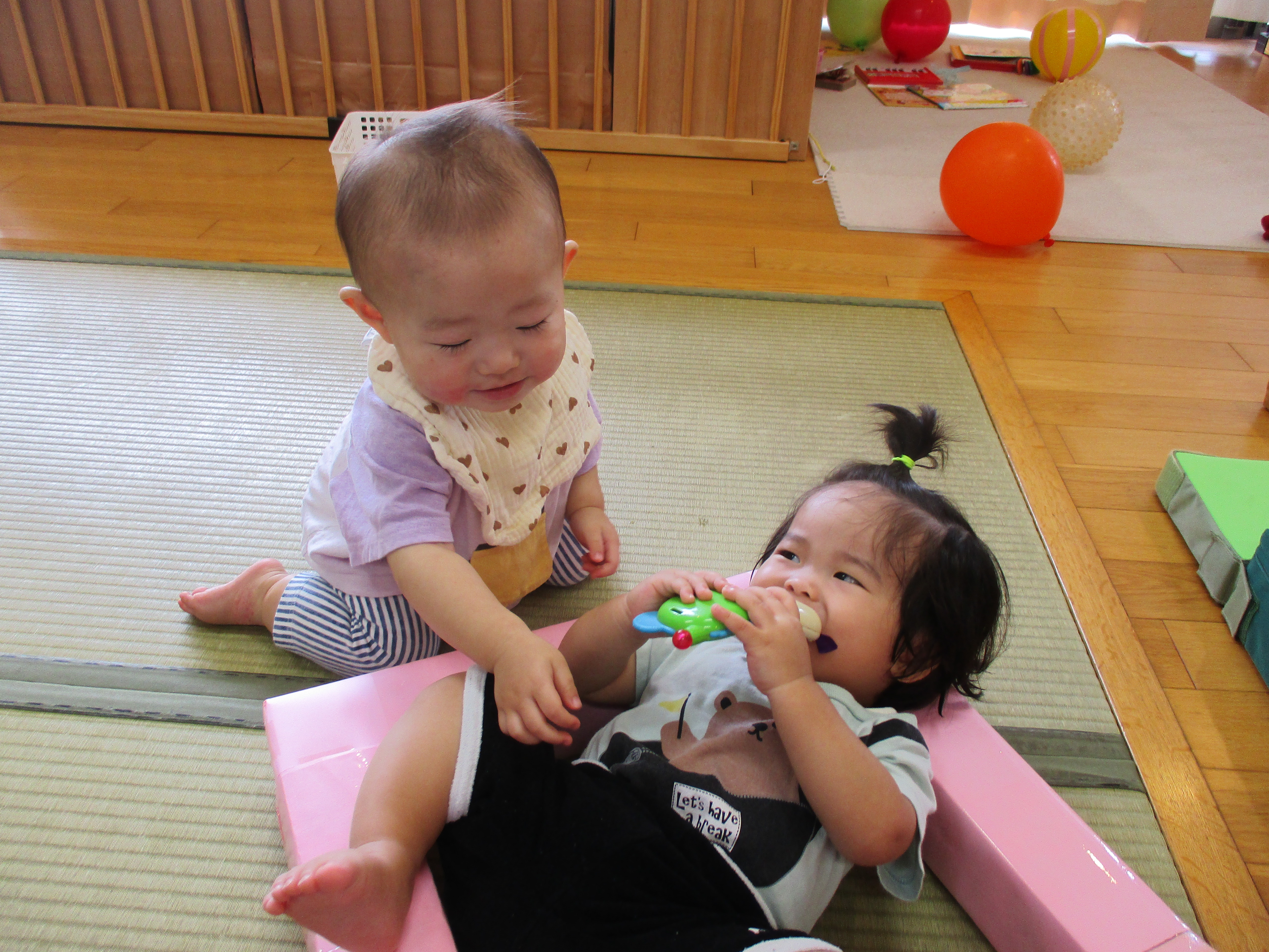 器用にひとつひとつ並べたり、持ってフリフリしたりと、それぞれの遊び方で楽しんでいました🎵