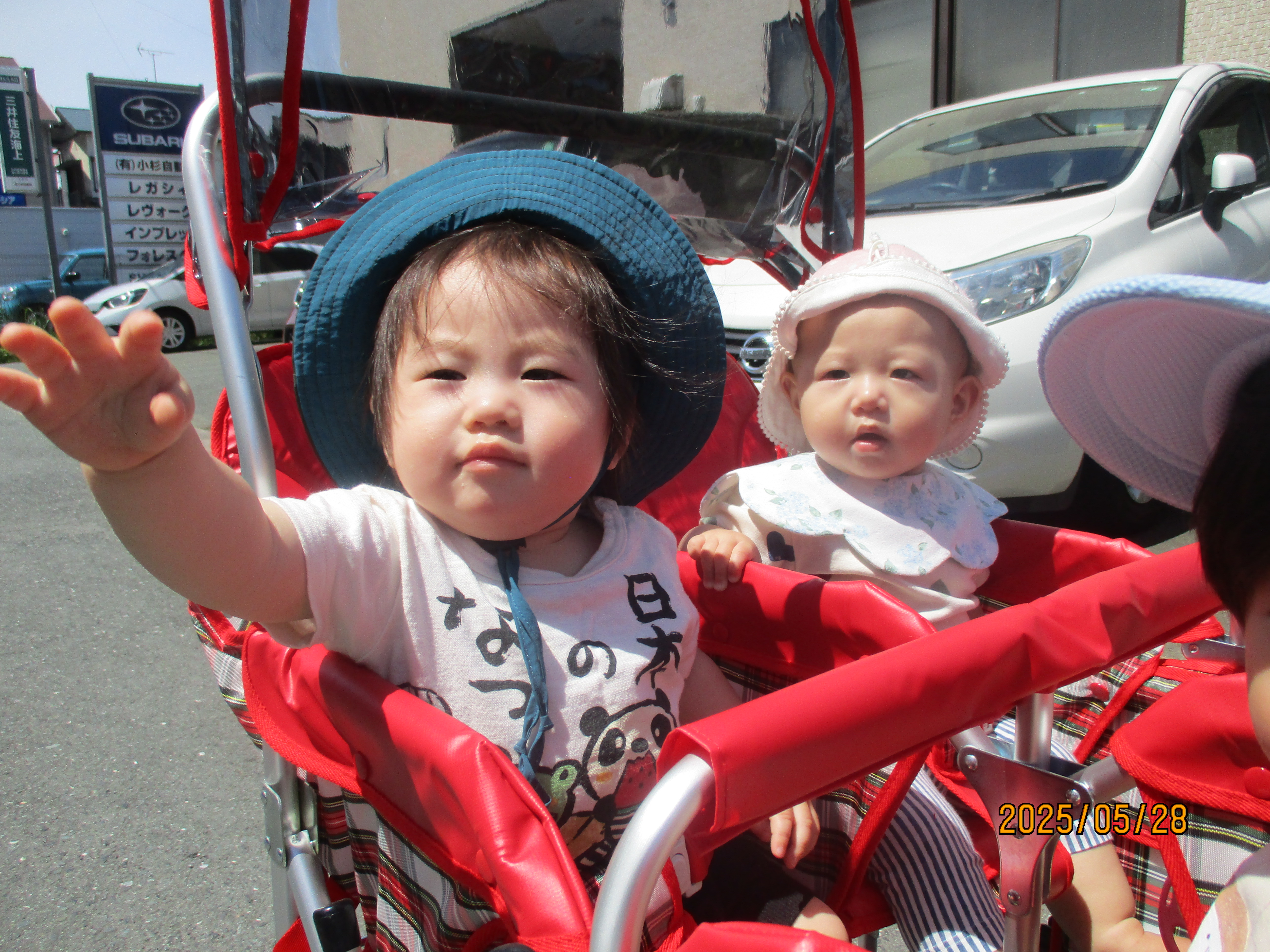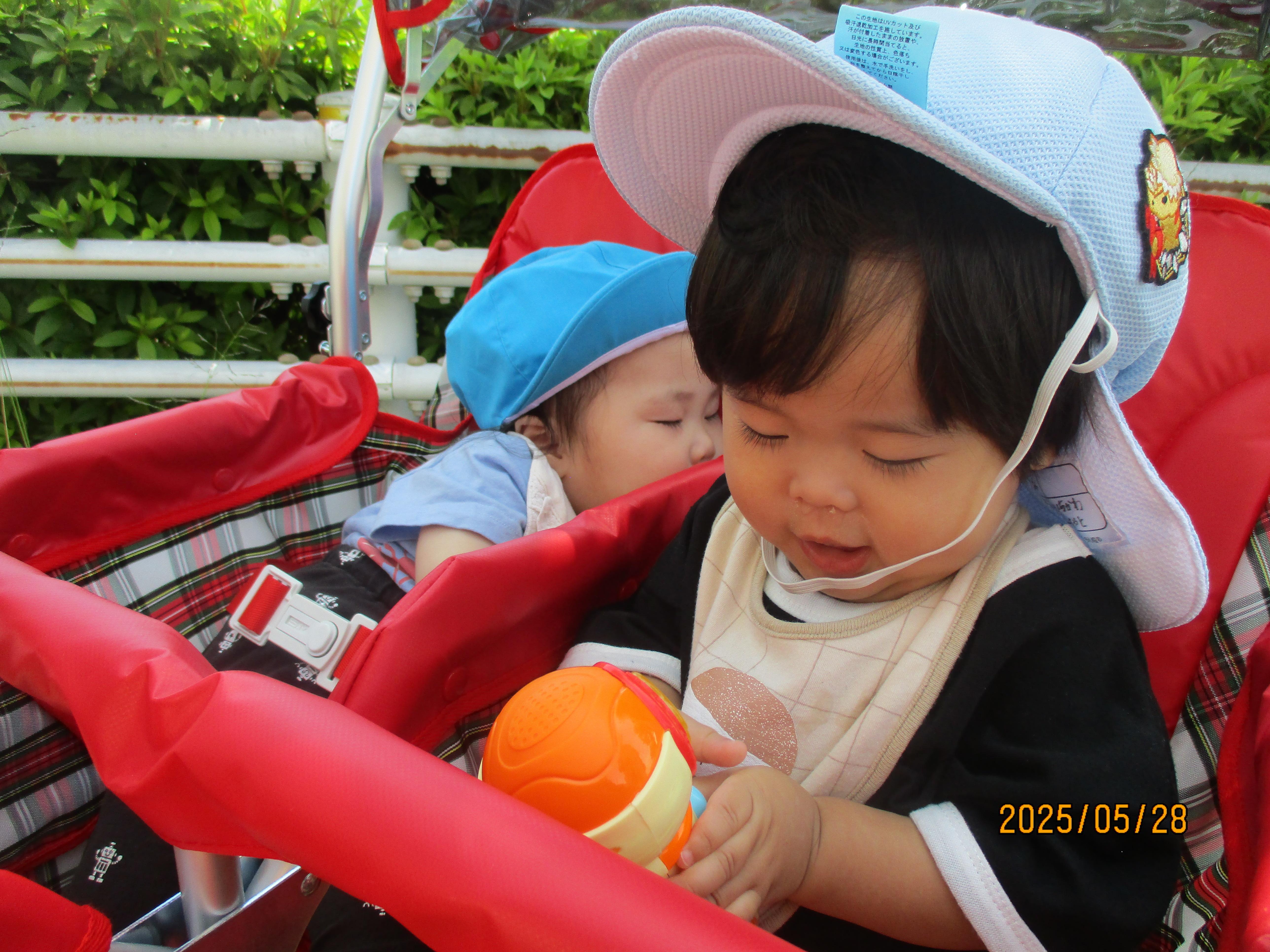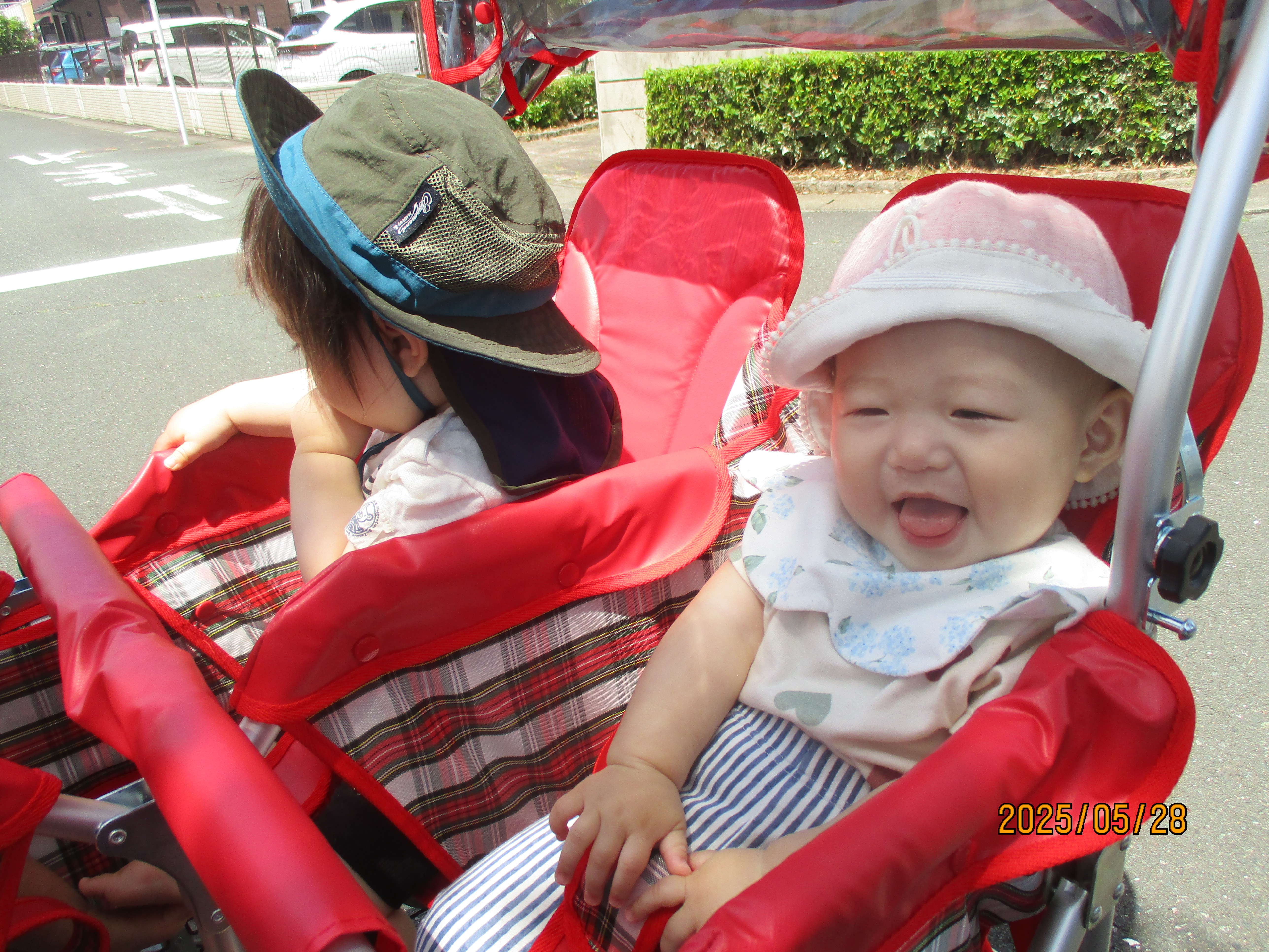 お友だちと向かい合わせで座り、目が合うと、ニコニコ笑顔で声を出したり、とってもうれしそうです♡