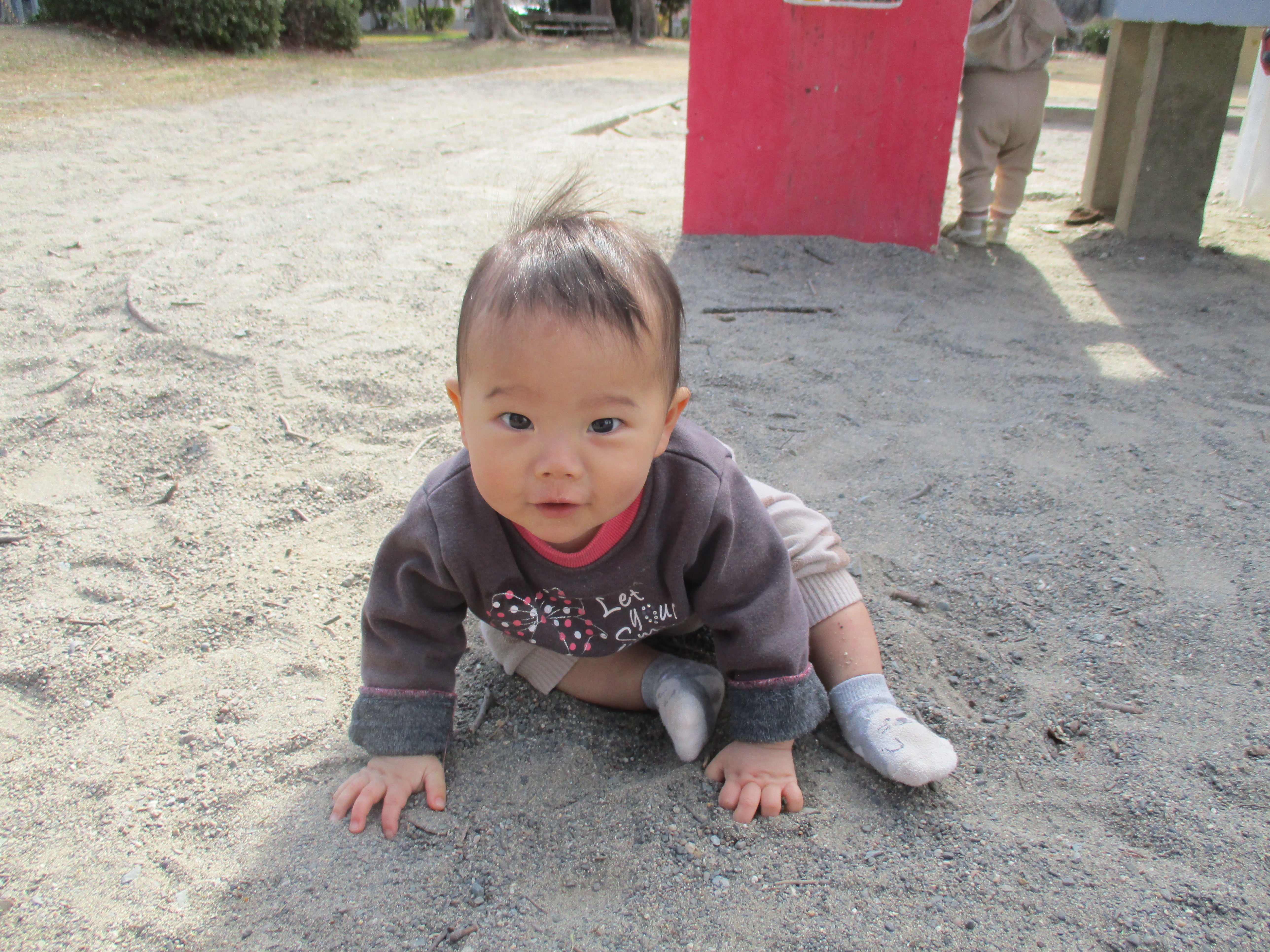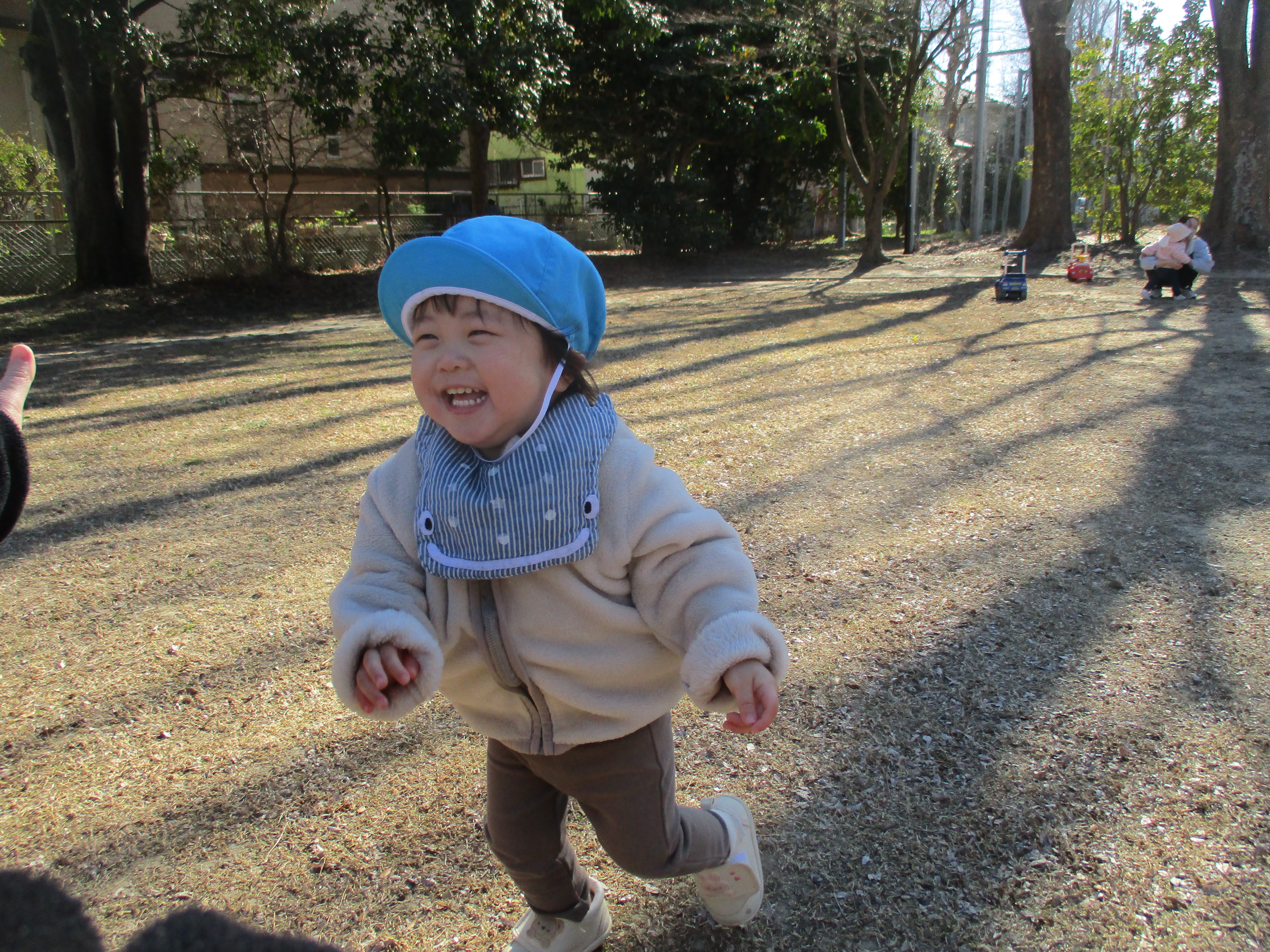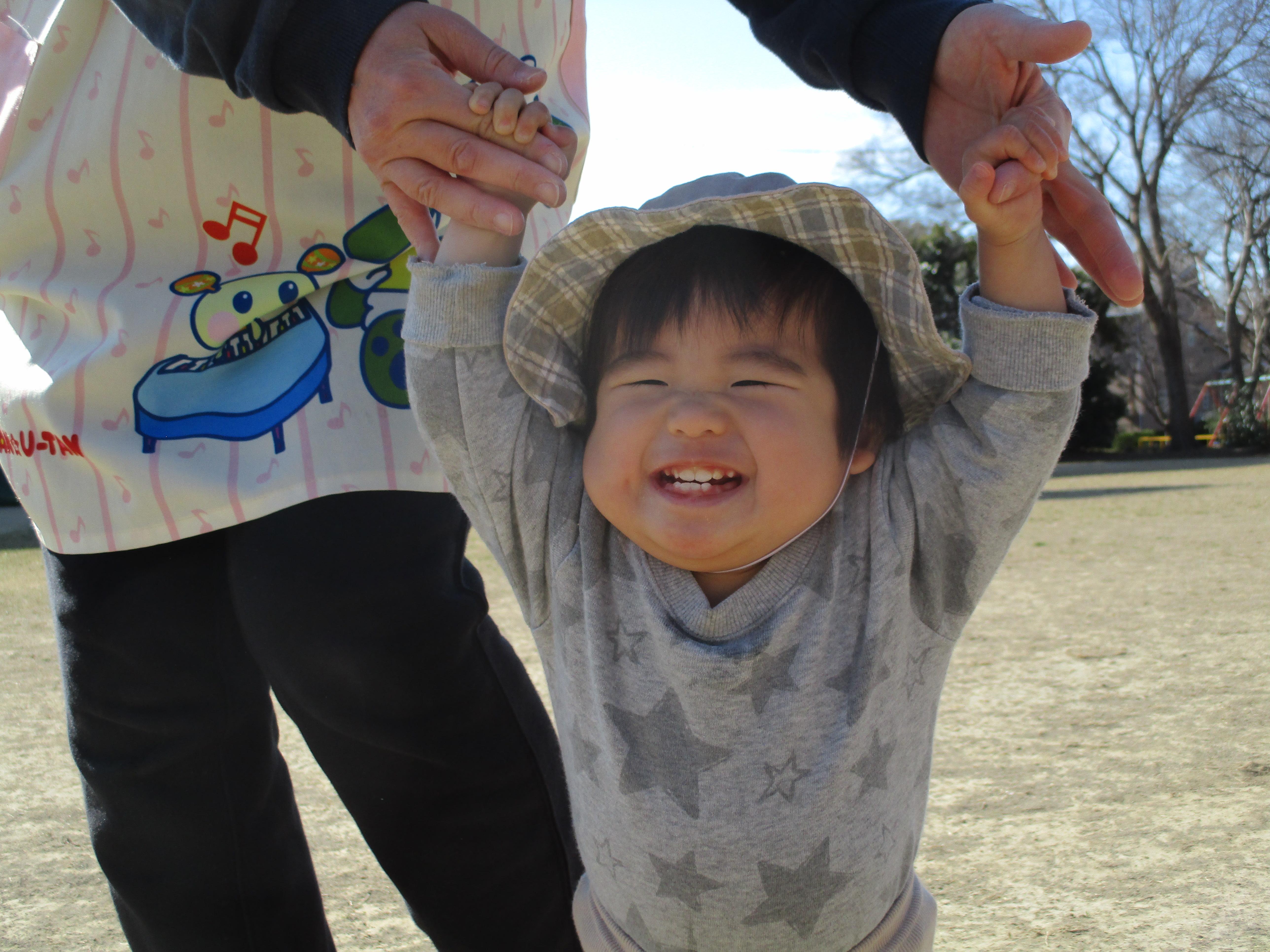 転んでもへっちゃら!すぐに立ち上がって、また走り出す姿にたくましさを感じ、歩行をするようになったお友だちも、ゆっくりゆっくりみんなの後ろを歩いて追いかける姿に、成長を感じるひとときでした😊😊