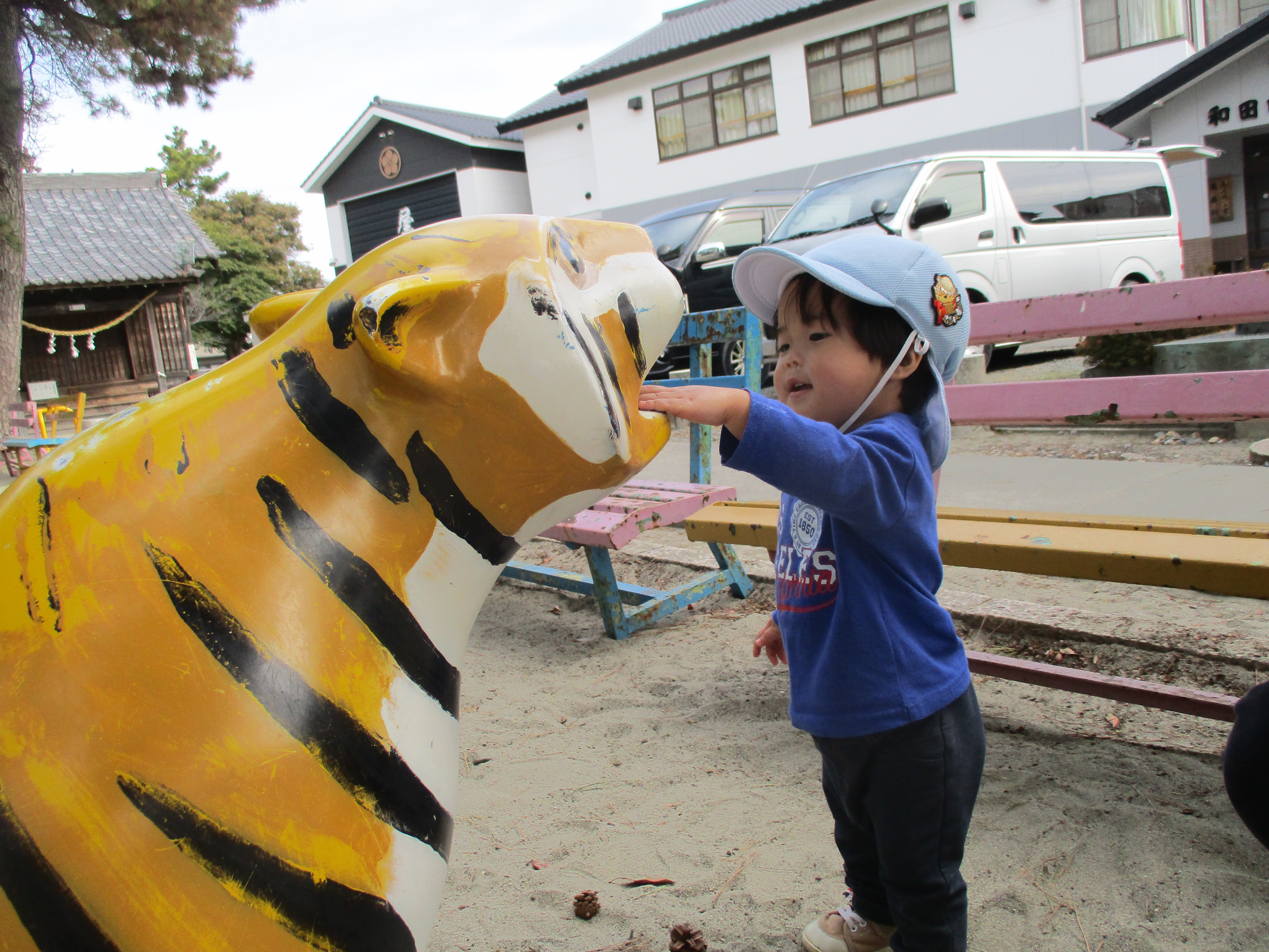 ゆらゆら揺れるアンパンマンのスプリング遊具やリスさん・トラさんに乗ったり、ポンポンとお顔を触ってみたり…!トラさんのお口に木の実をア~ンしていたお友だちもいましたよ🥰