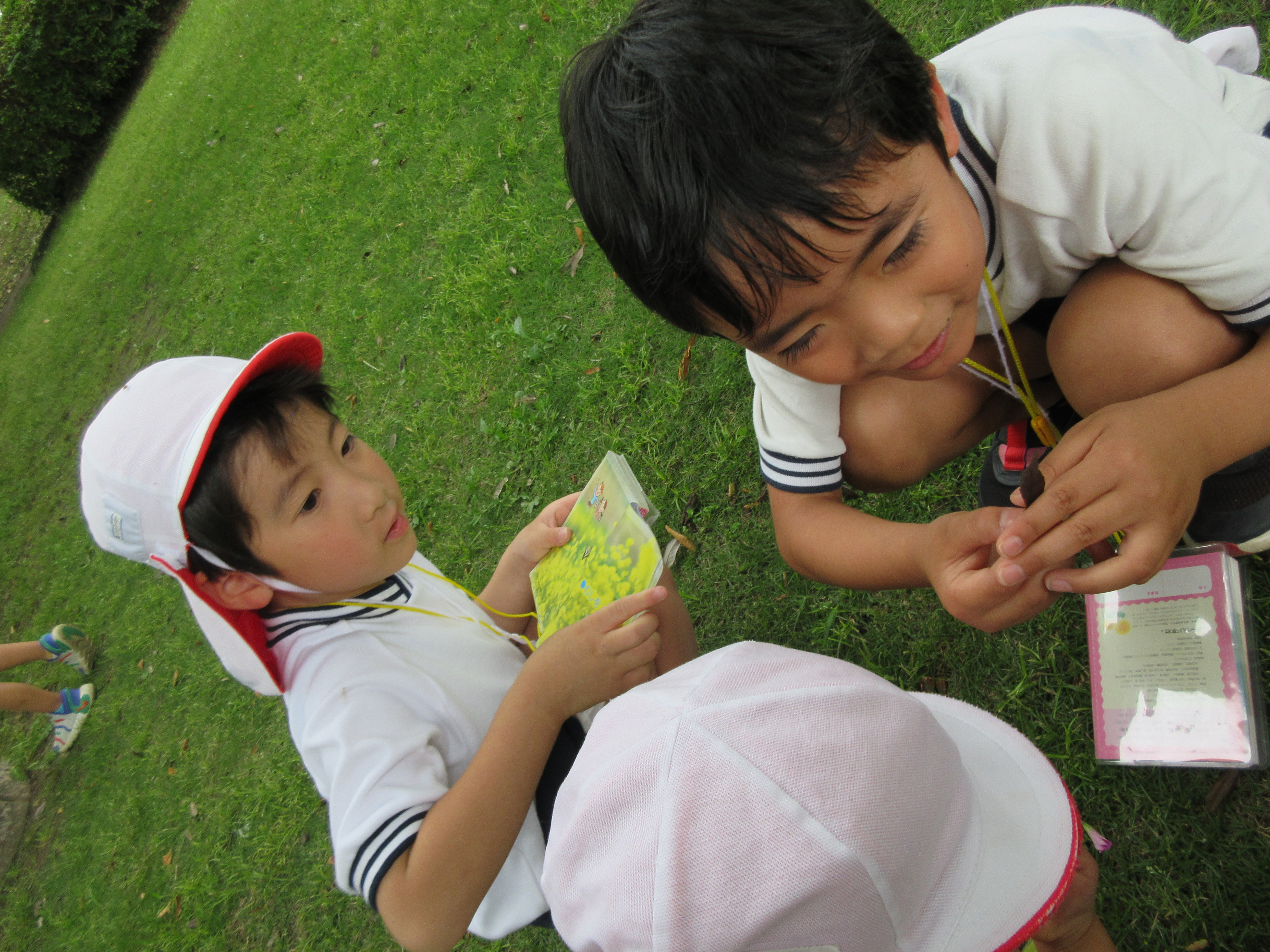 公園に着くと早速むしめがねを使って“なにかないかな?‘‘と