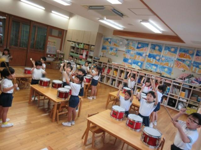 「今日も鼓隊やる?」と聞いてきたり、活動の間に「たん・うん・たん・うん」と練習をしていたりなど、とても意欲的に頑張っています。