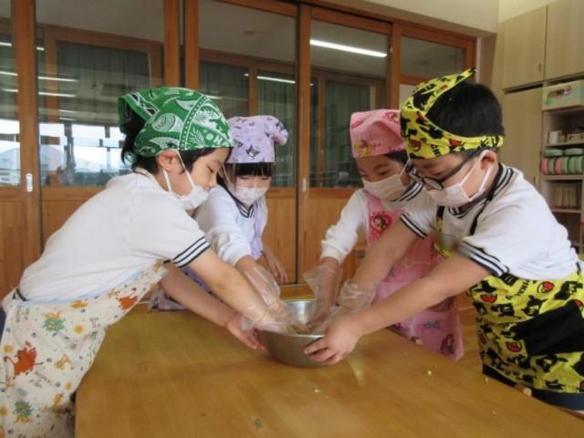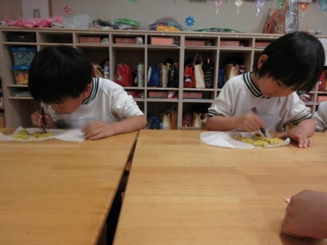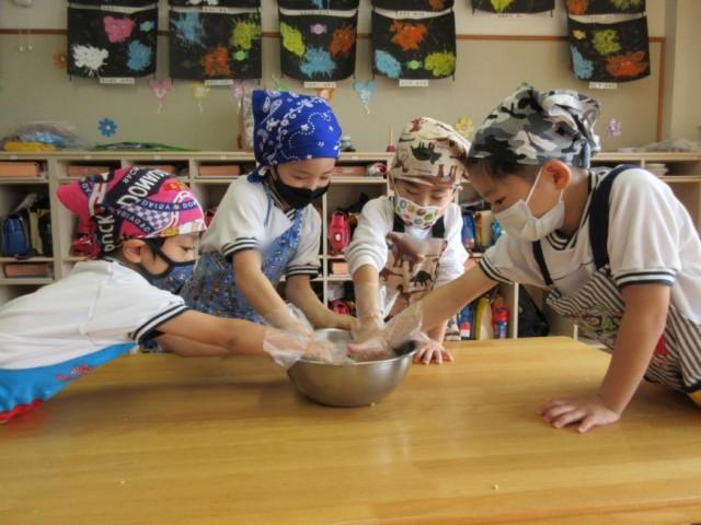 ひまわり組さんで植えて、掘ったさつまいもを使ってスイートポテトクッキングをしました。