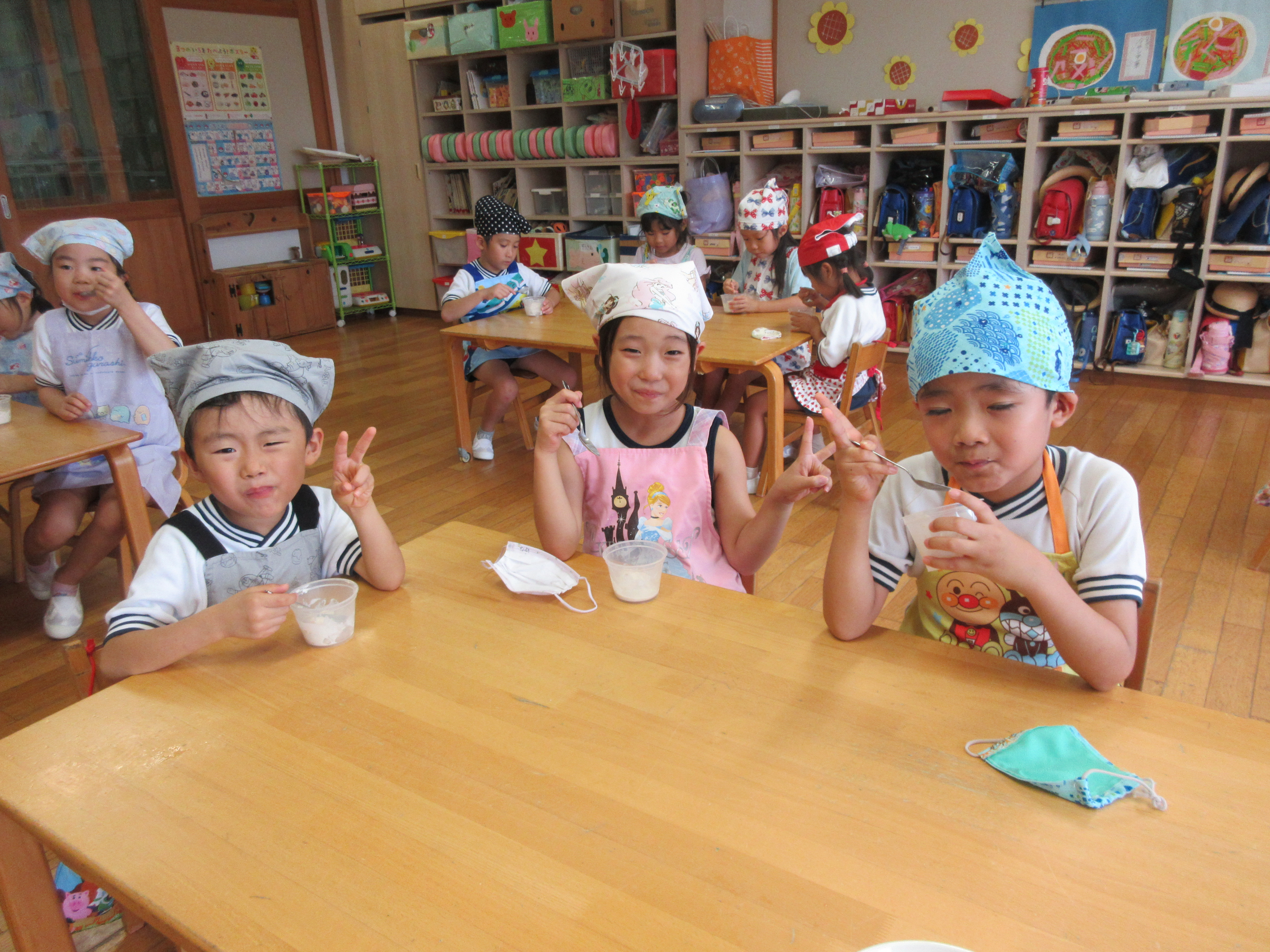 溶ける前にグループごとで“いただきます”をしておいしく食べました♪