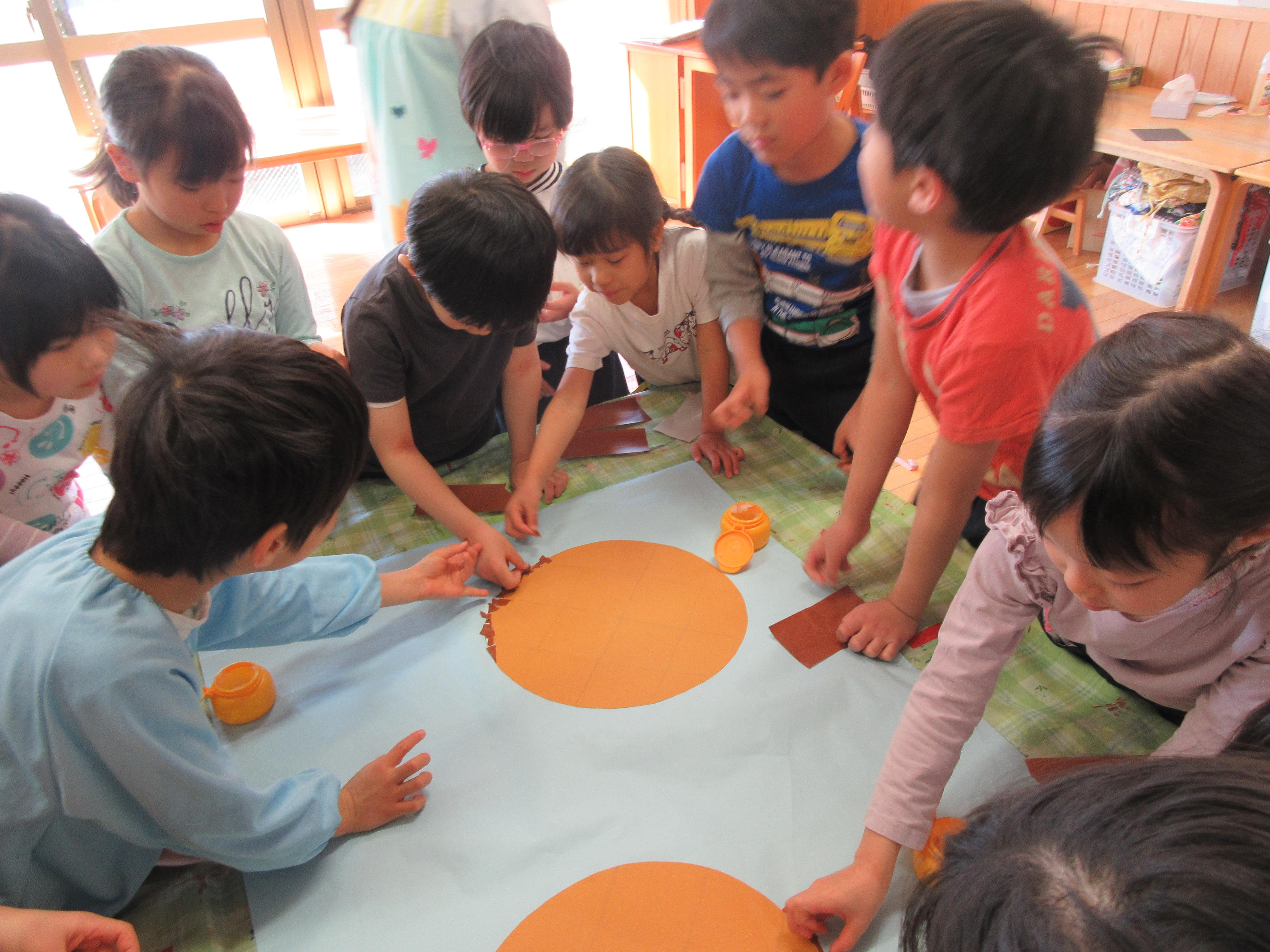 細かくちぎって貼り付ける様子からも手先が器用になったなと