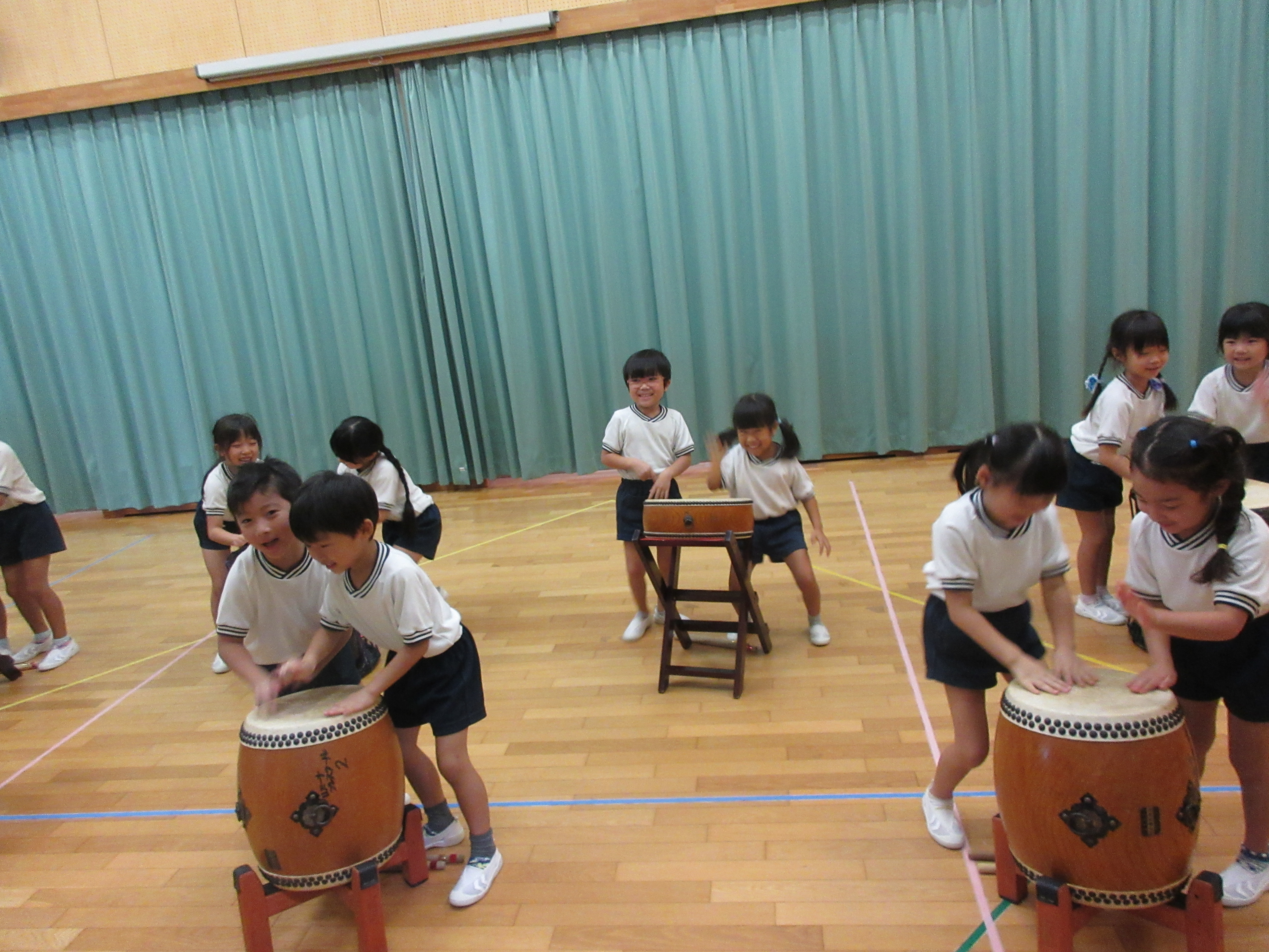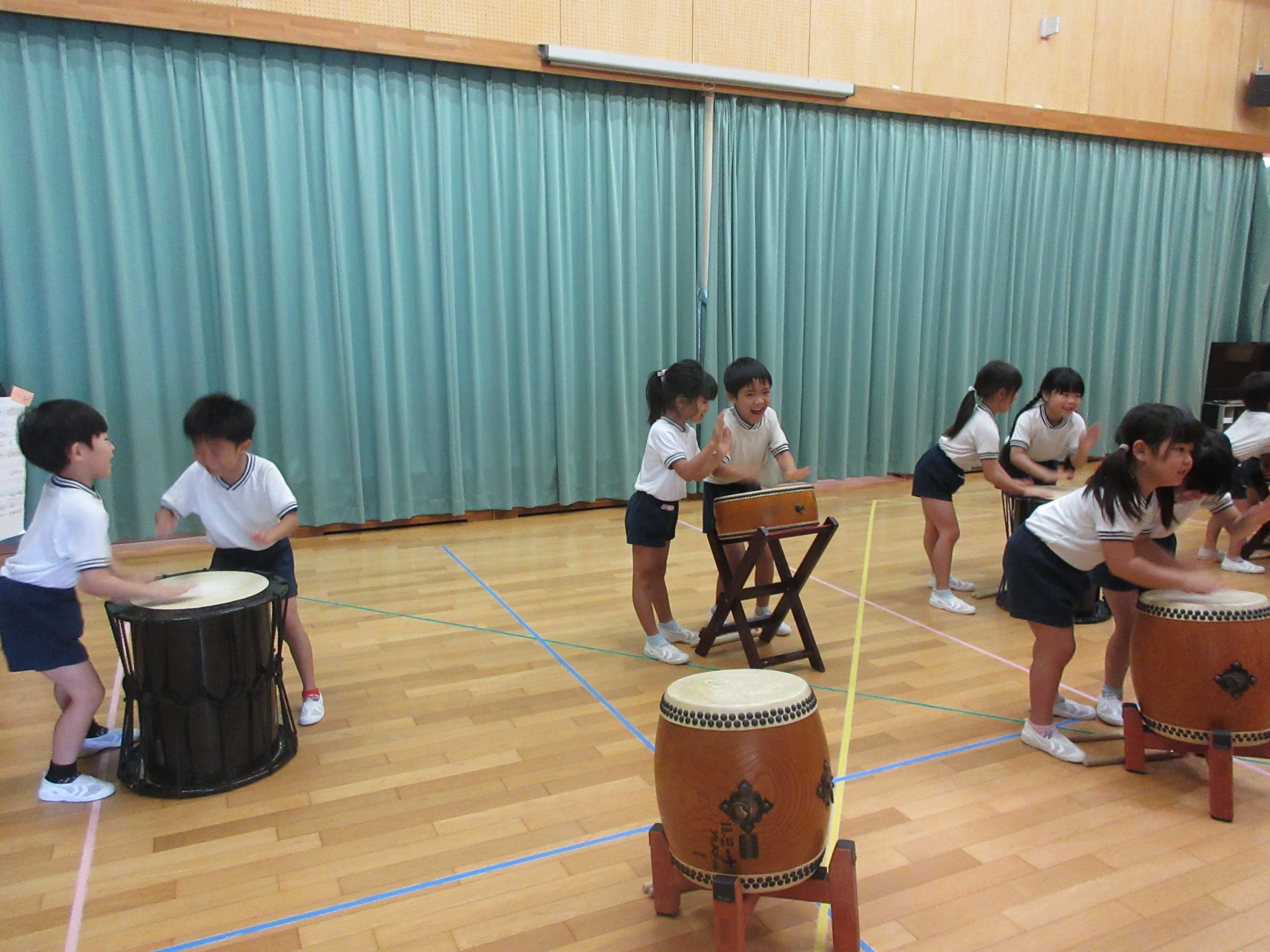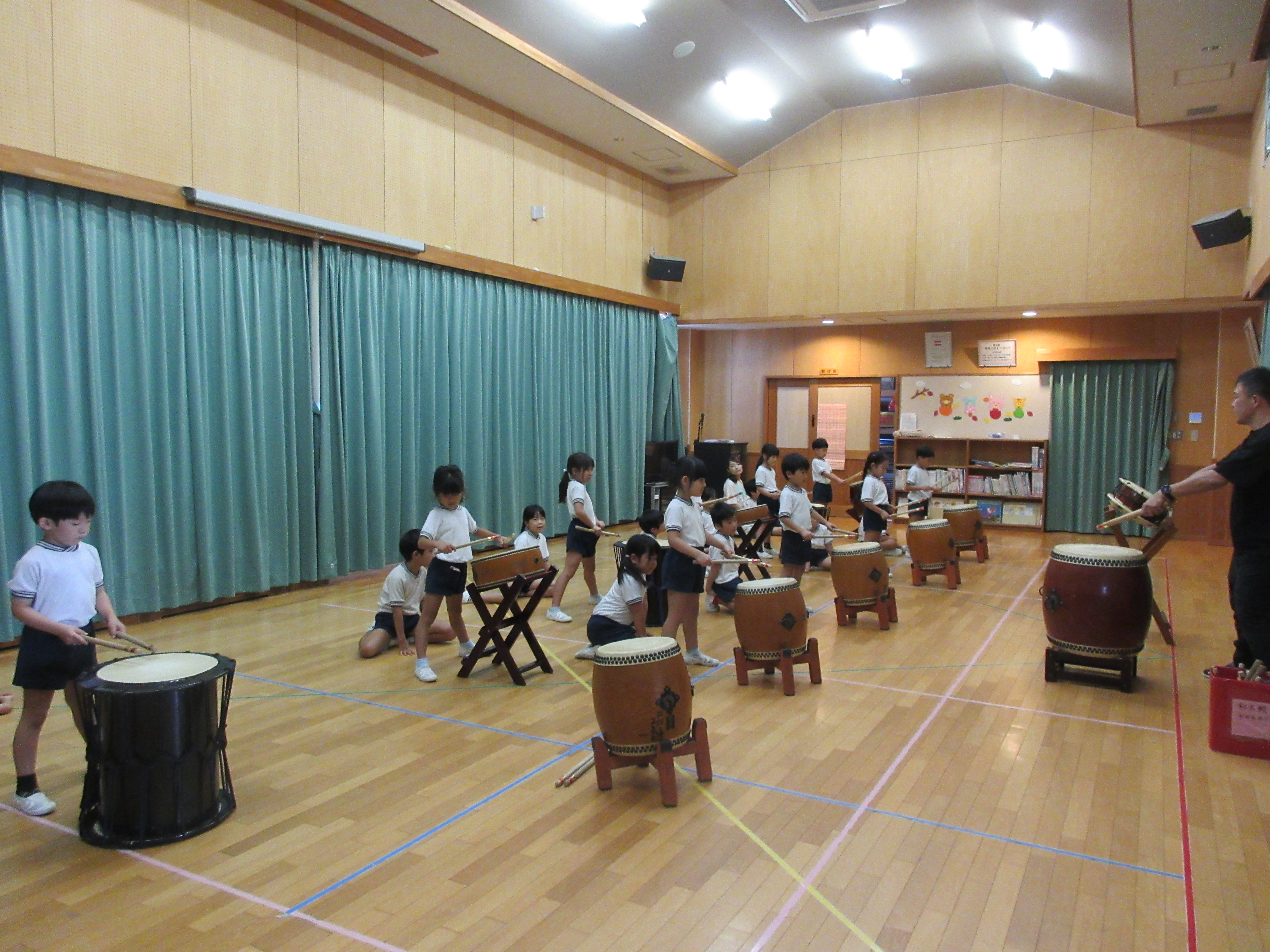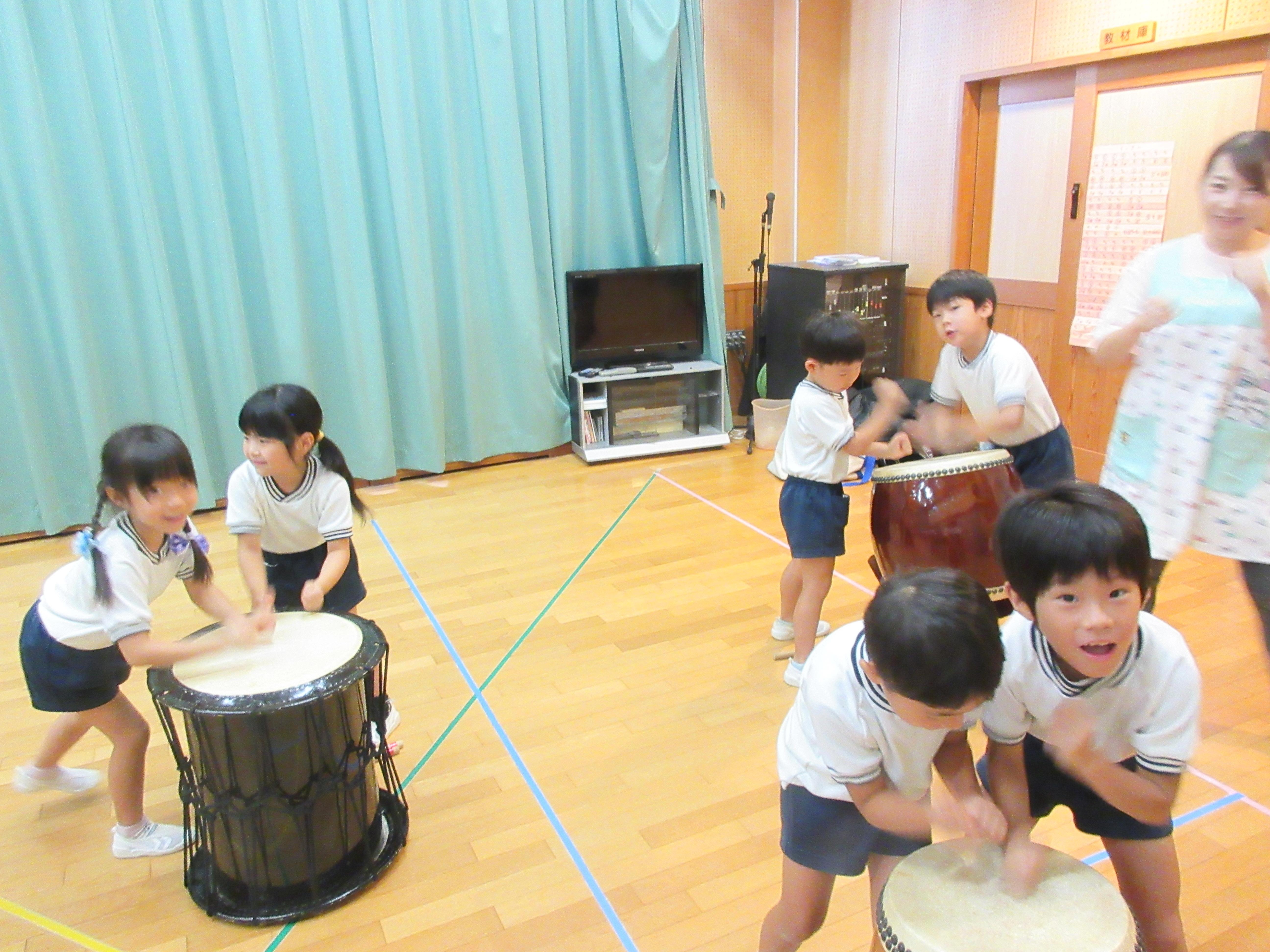 お遊戯会の練習が始まり、ひまわり組になって初めての和太鼓遊び!