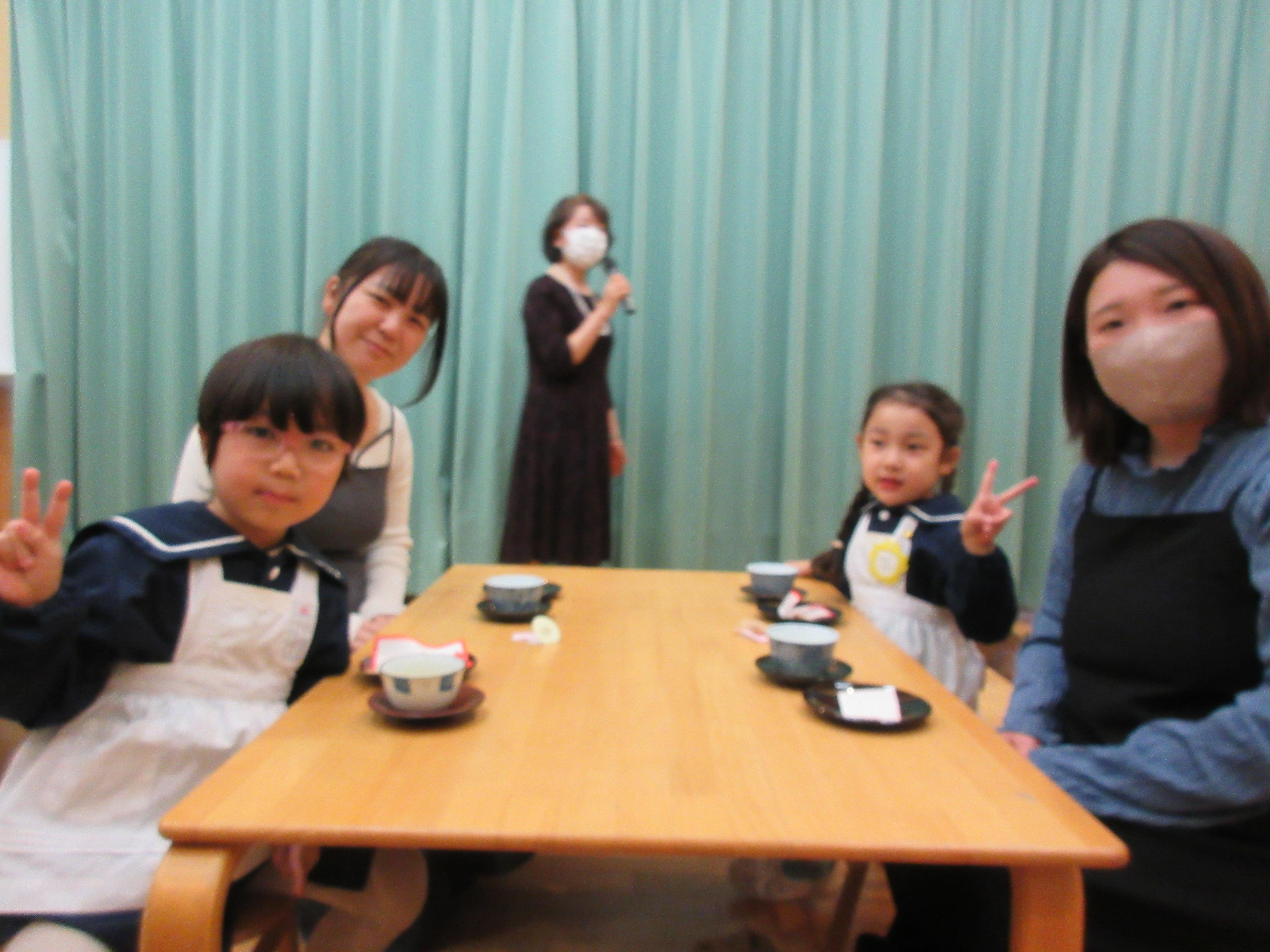 親子で会話をしながらお茶とお菓子を楽しみました!