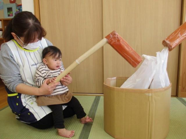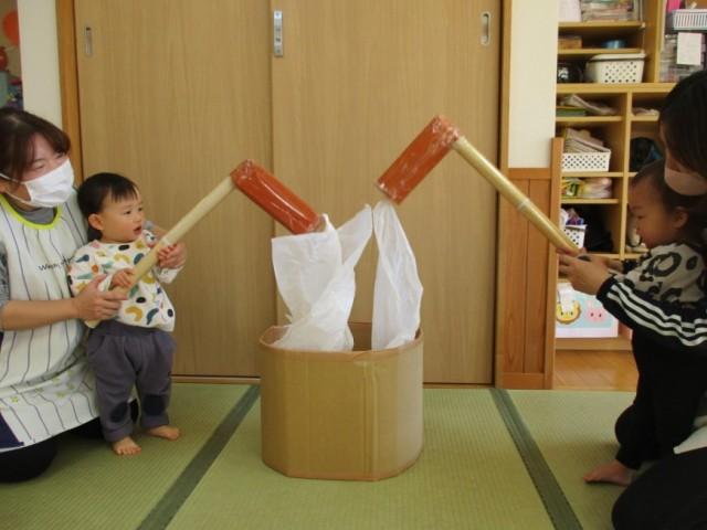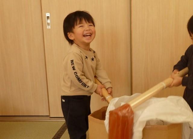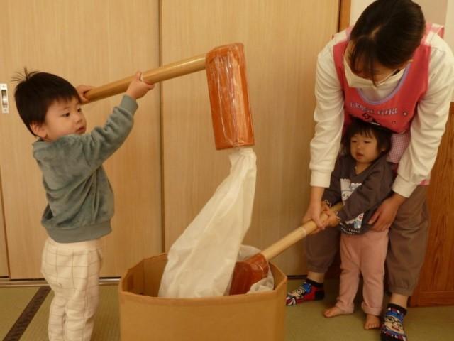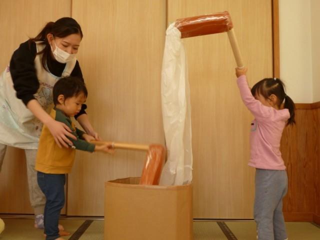 もちつき後…クラスでは、もちつきごっこを楽しみました。まねっこでペッタン!ペッタン!と笑顔の子どもたちです。