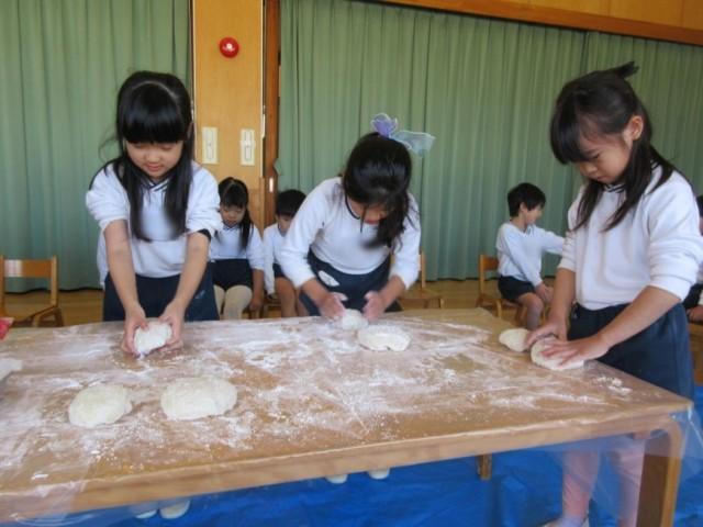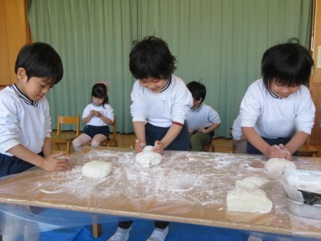 年長ひまわり組さんは、鏡餅作りに挑戦です。各クラス用に鏡餅を作ってくれました。