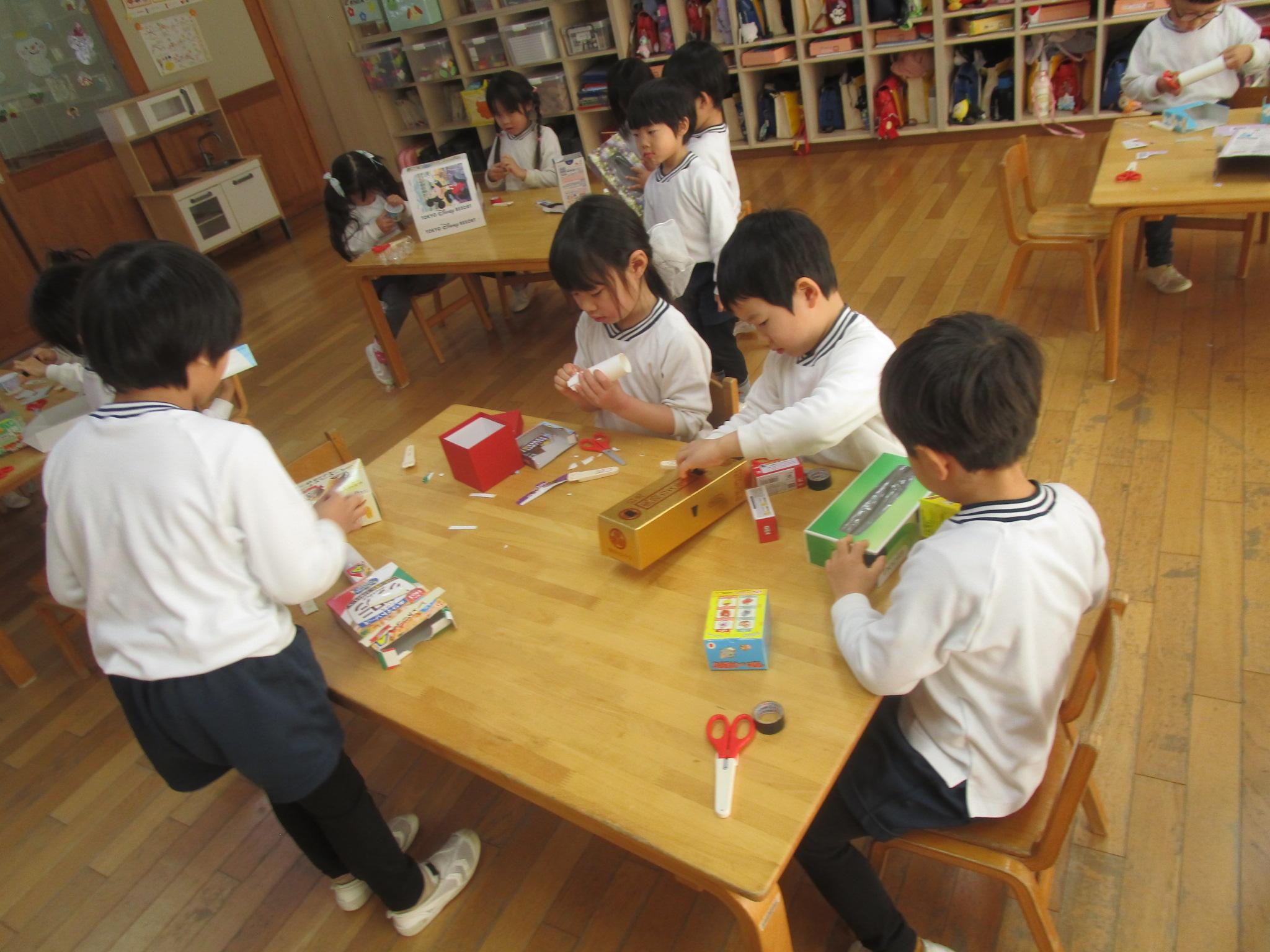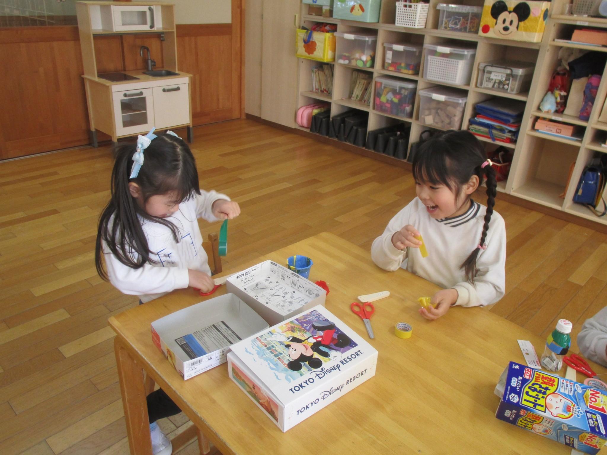 しました。ハサミの約束をしっかりと守りながら、友達と協力して滑り台を作ったり