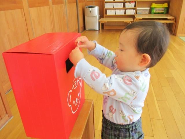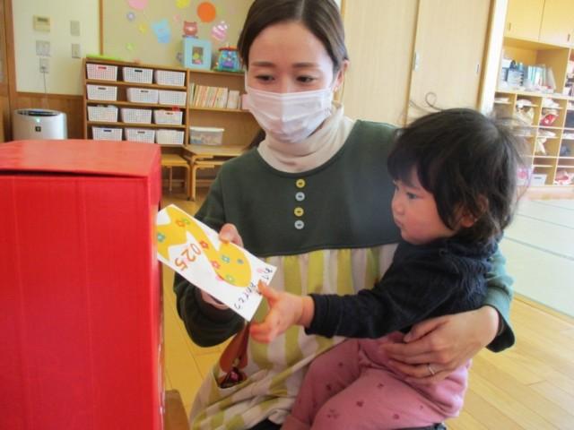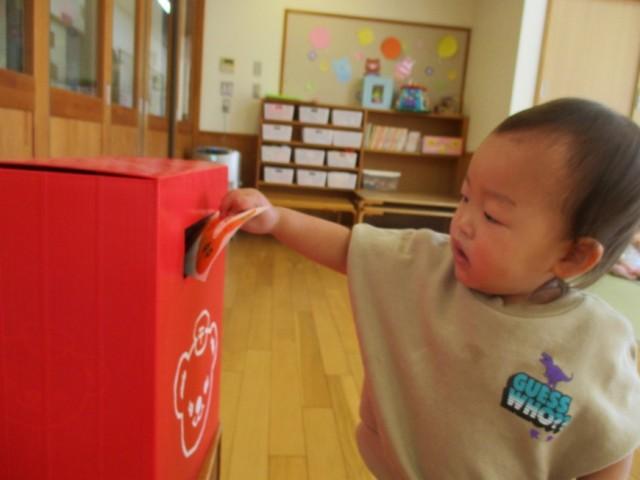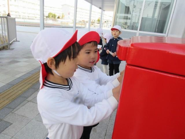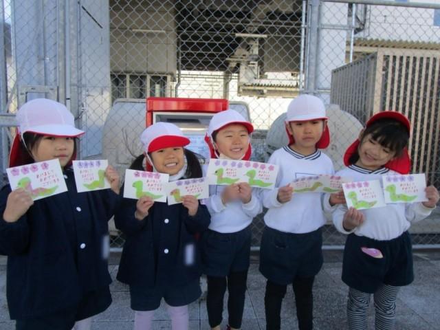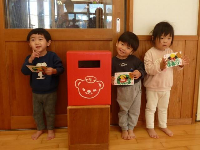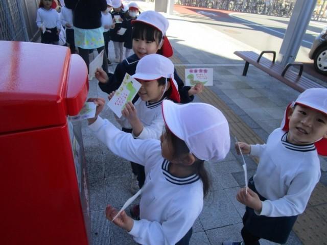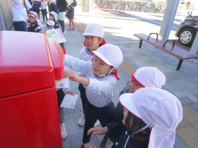 つくし、たんぽぽ、すみれ組は園のポスト「ぽすくま」へ投函。年長ひまわり組さんが、郵便屋さんになって駅前のポストに投函してくれました。