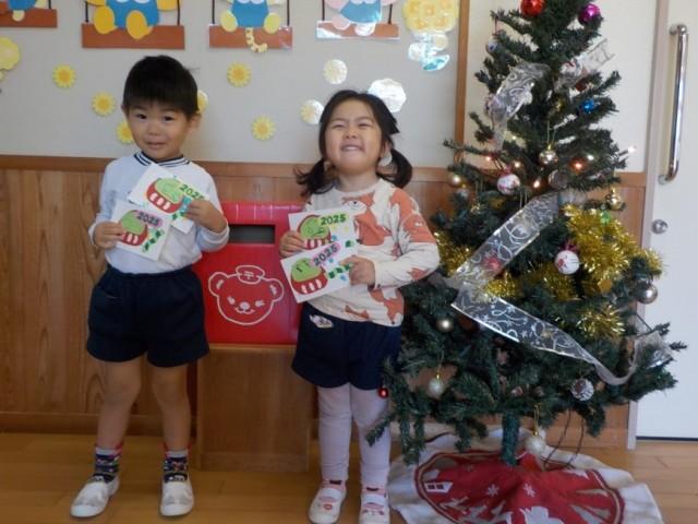 年賀状製作をしました!各クラス、2025年の干支「へび」を素敵なデザインで作ってくれました。