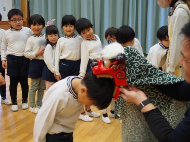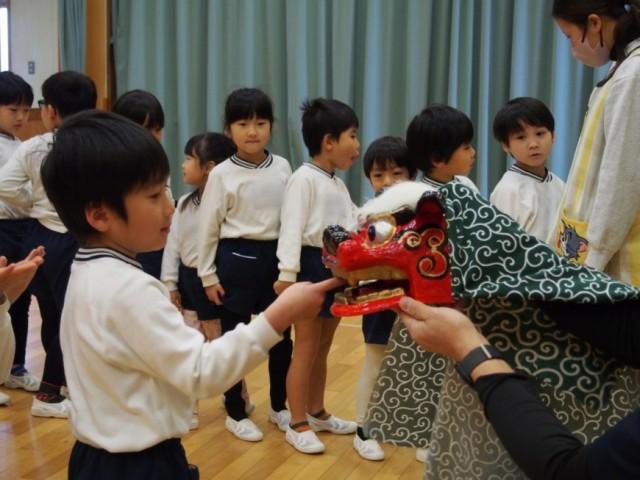最後には、獅子舞の登場に驚いた子どもたち。順番に、手や頭を噛んでもらい大喜びでした。