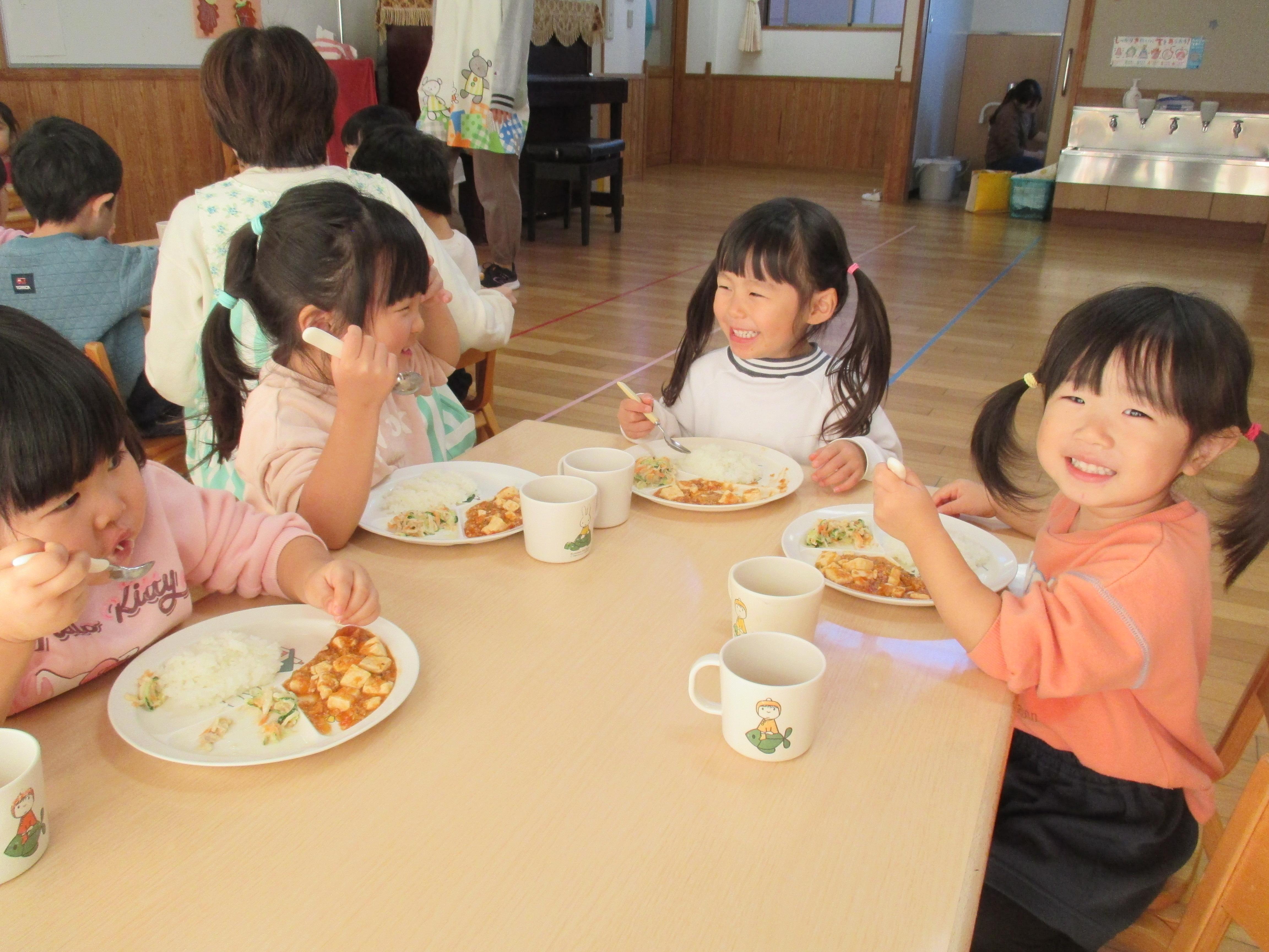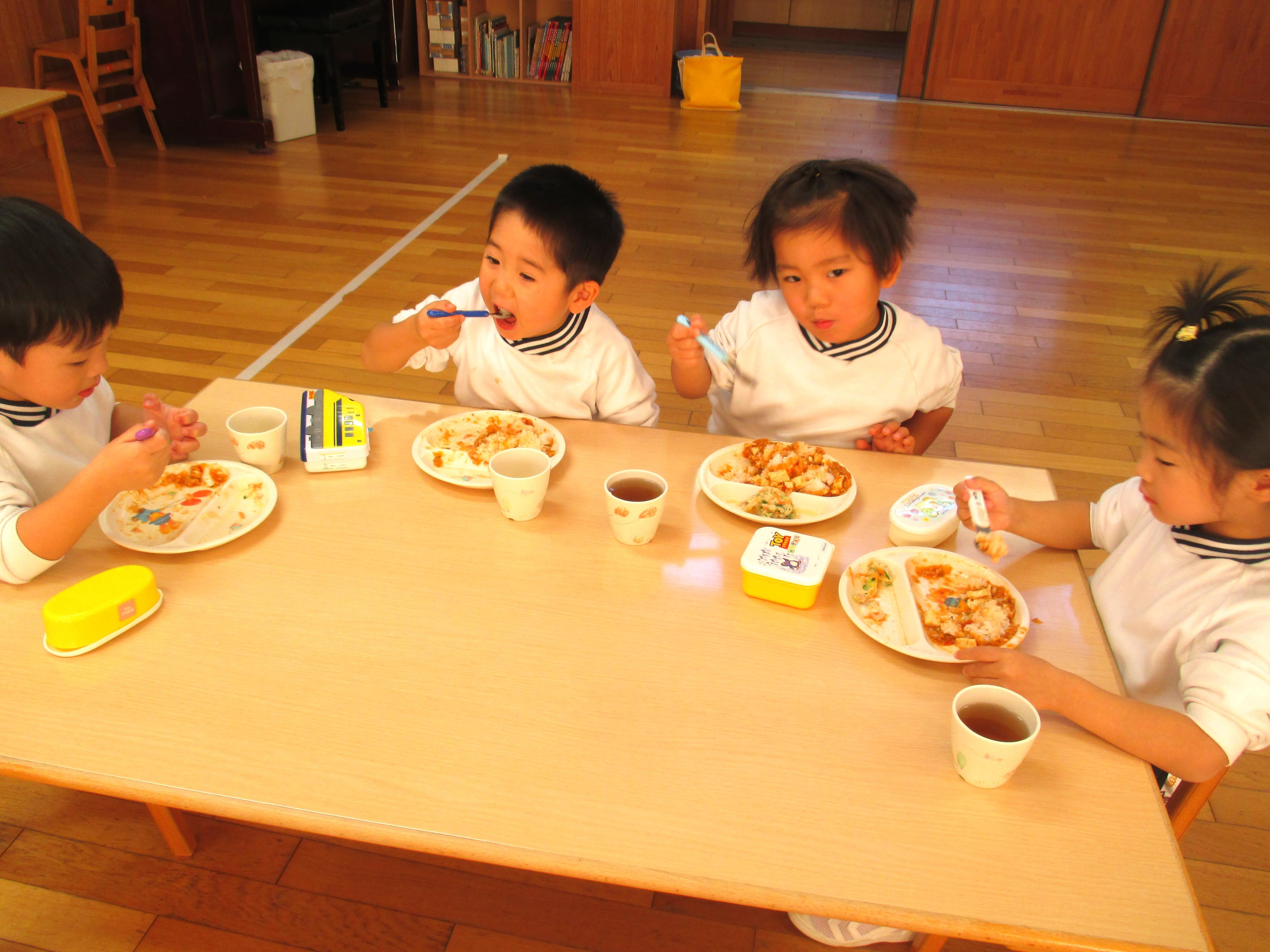 同じメニューを、一緒のタイミングで食べるなど、楽しんで給食の時間を過ごしています♪