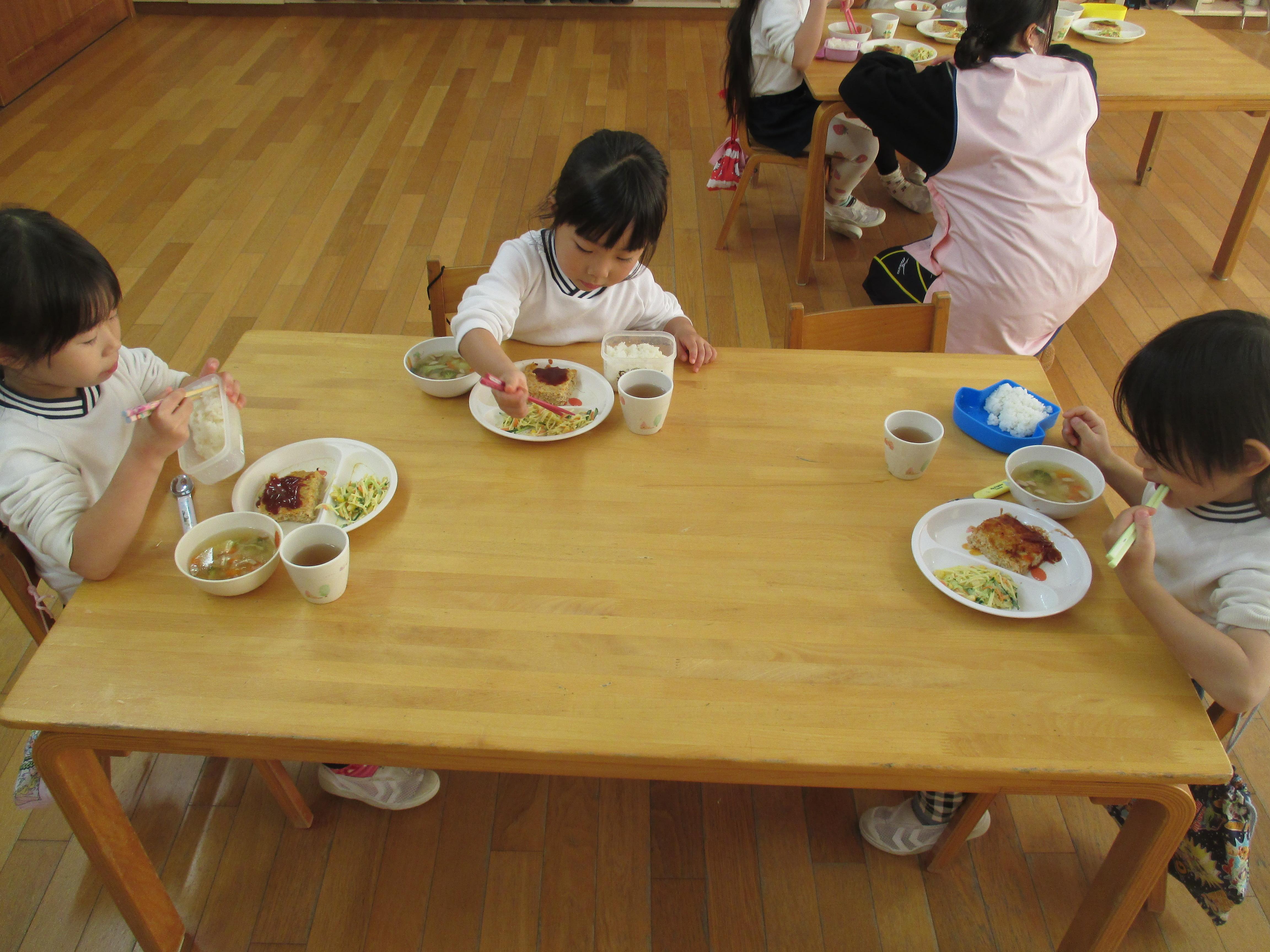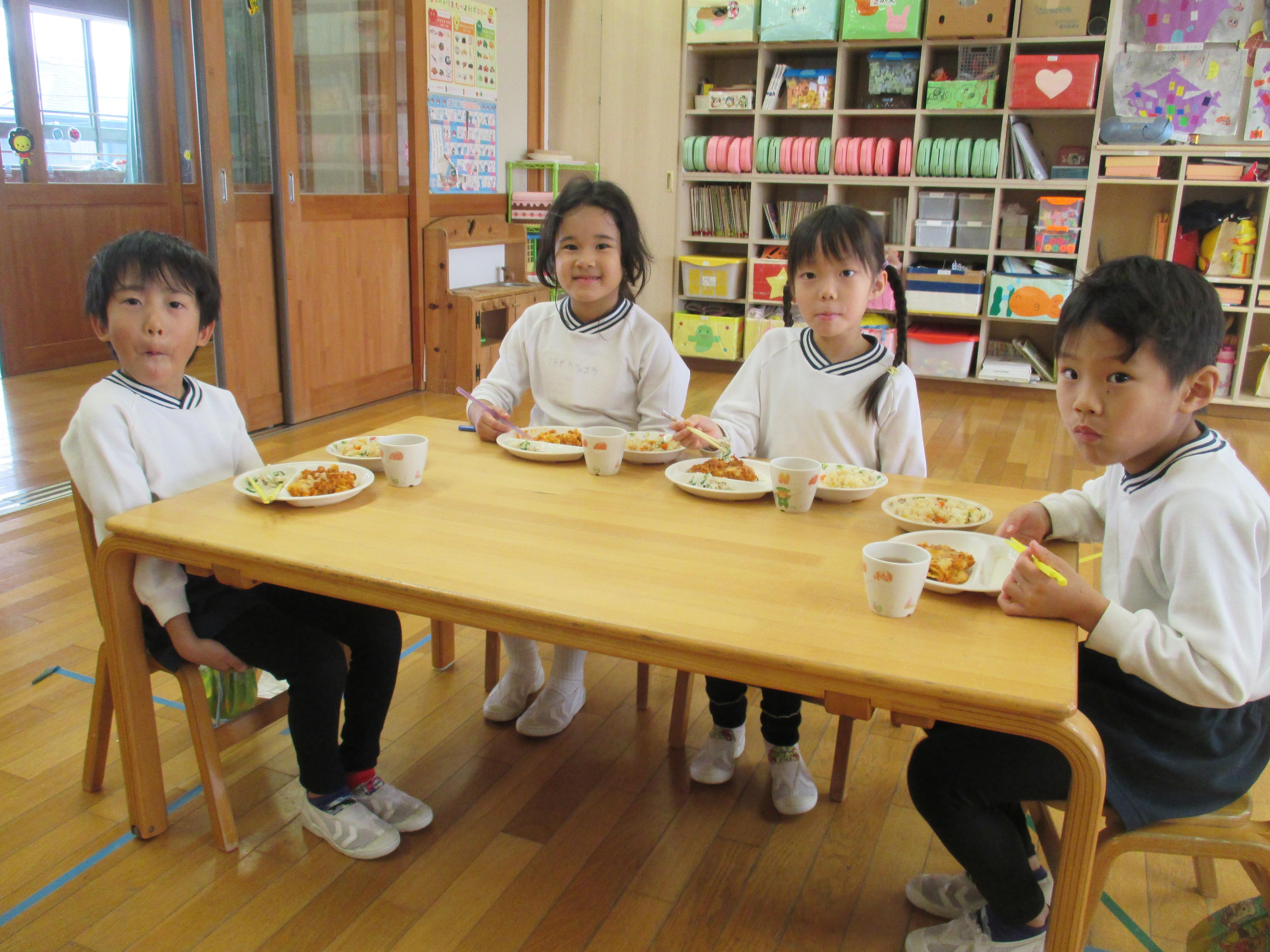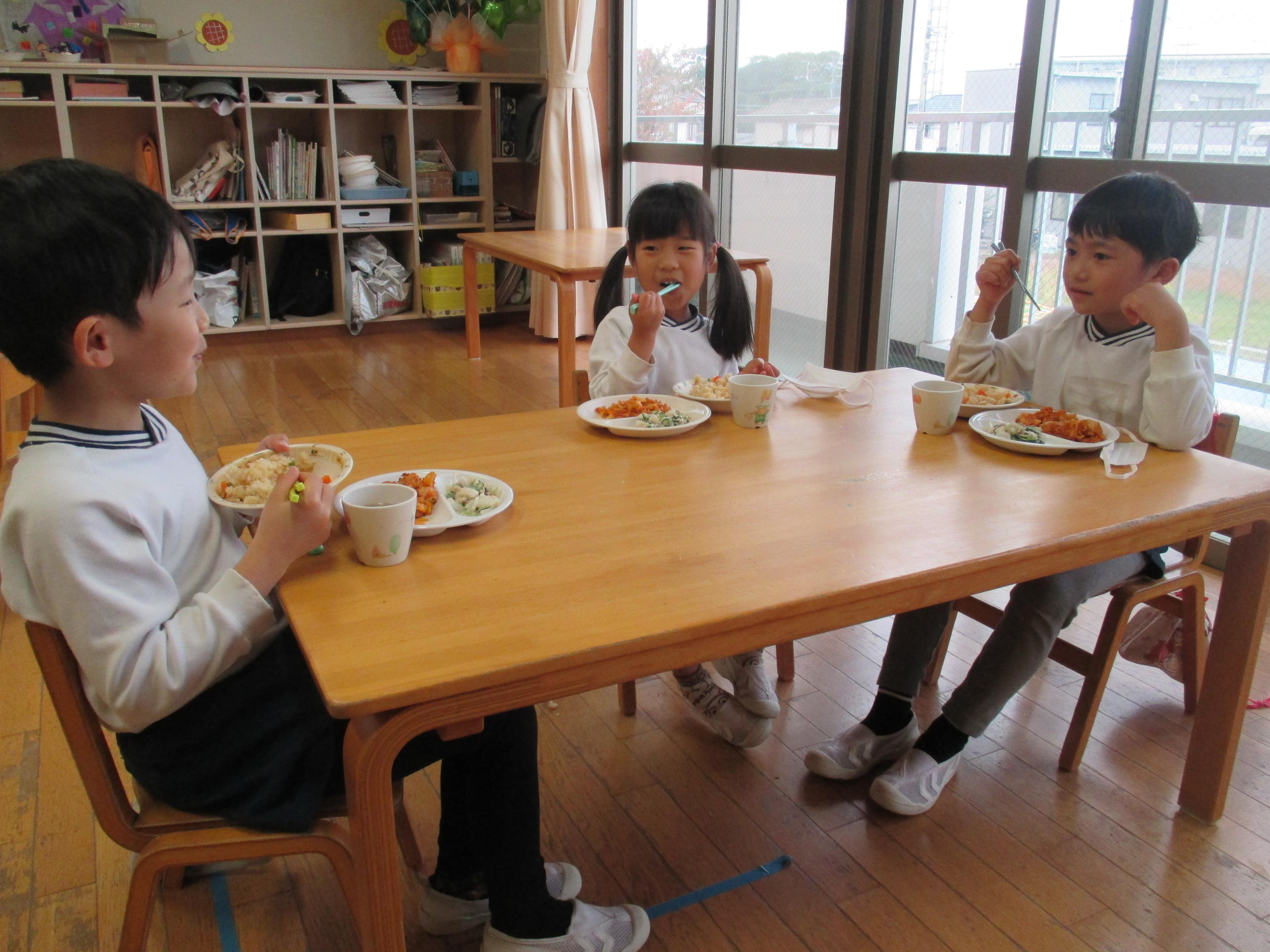 「おいしいね!」「これ、わたしがすきなごはんだ~!」とお友だちとの会話を楽しんでいます♪