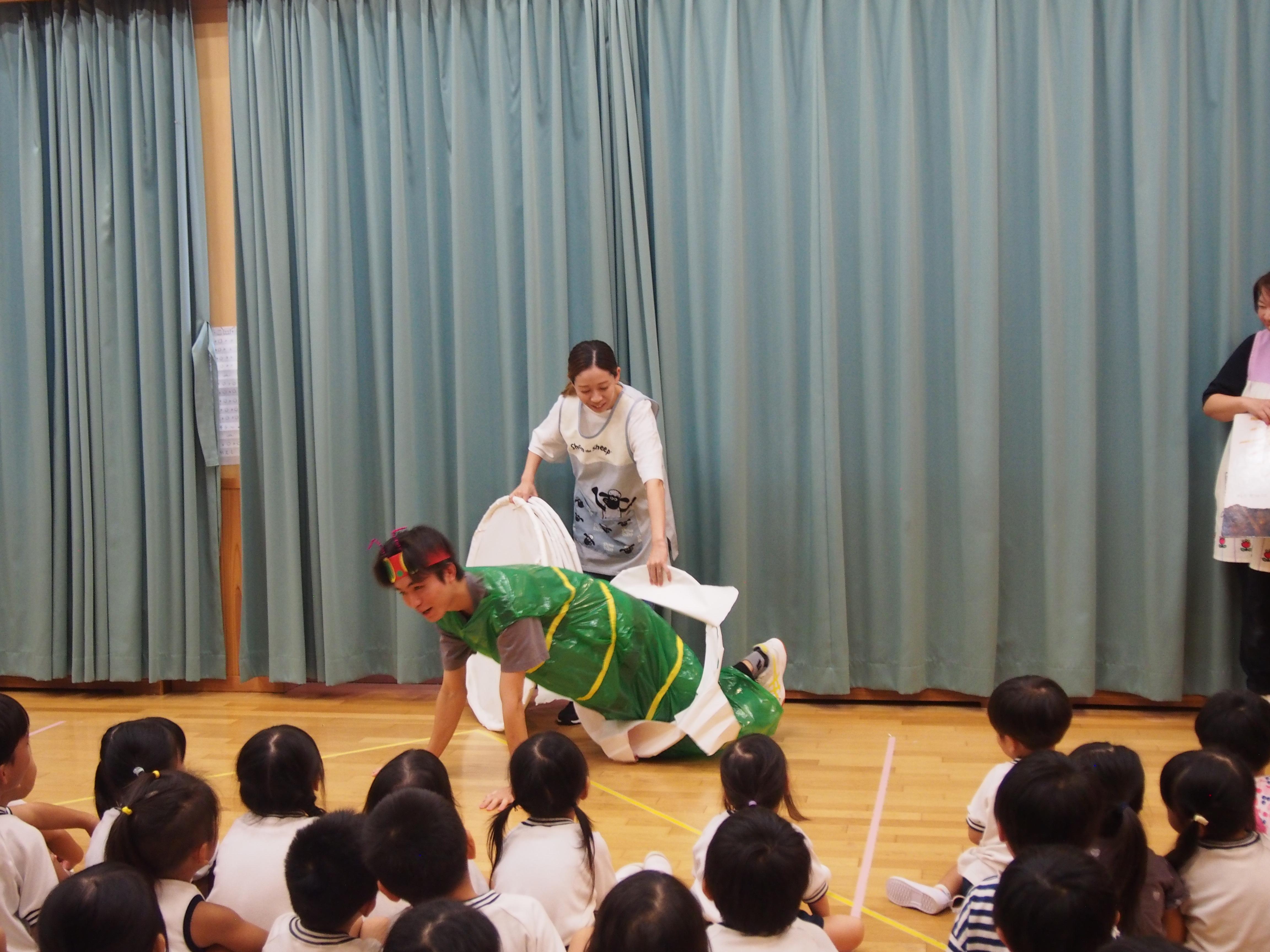 先生たちの出し物は「はらぺこあおむし」の劇!あおむしの登場から大盛り上がりで楽しかったね。