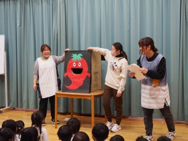 先生からの出し物で、ばけたくんが食べた物の模様に変身していく様子が楽しかったようです。