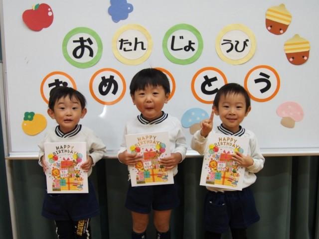 11月の誕生児は11名。運動の秋、食欲の秋!そんな素敵な季節に生まれた笑顔と元気いっぱいの子どもたちです。今年は秋を通り過ぎて夏から急に冬になったように寒くなってしまいましたが、健康に過ごしてほしいと思います。