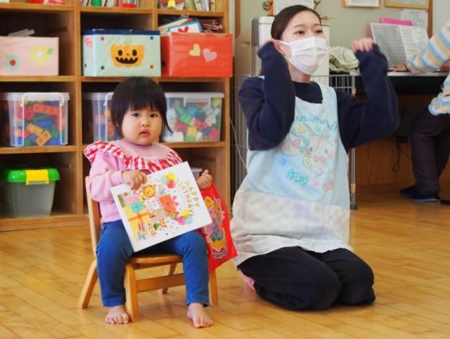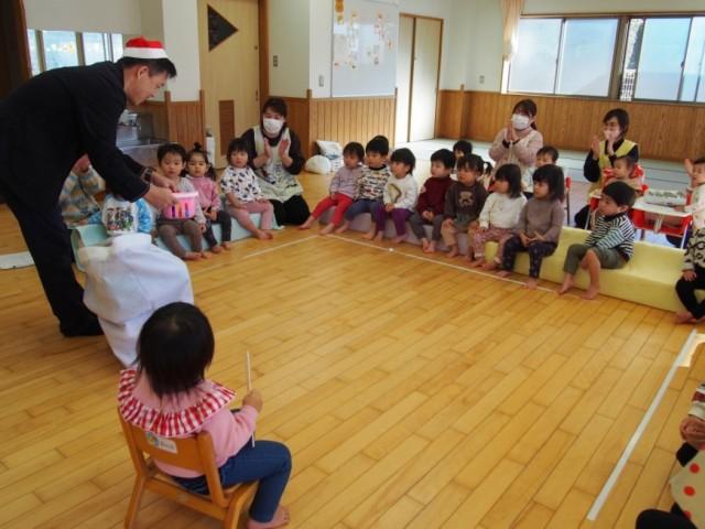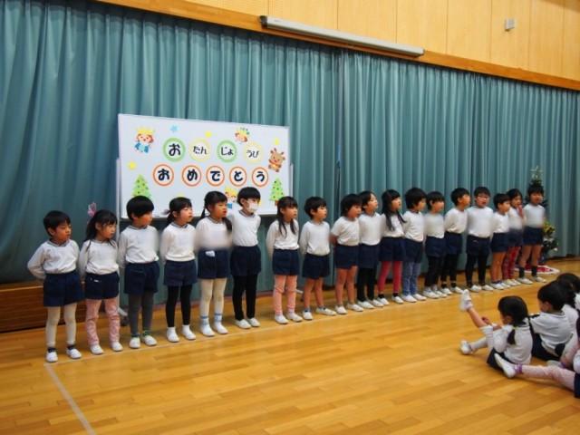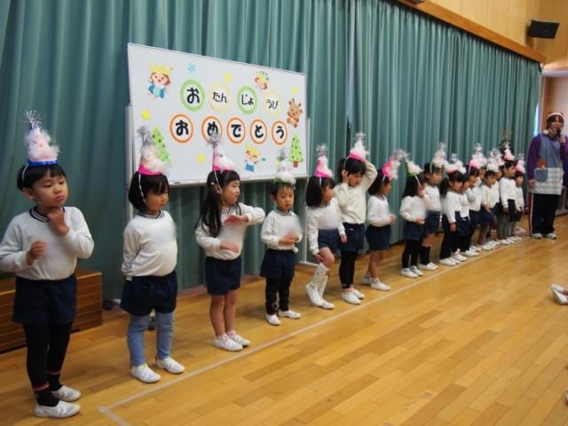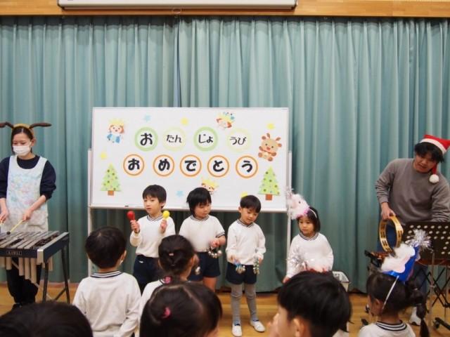 12月の誕生児は5名。お祝いの後は、先生からの出し物「クリスマスコンサート」を楽しみました。