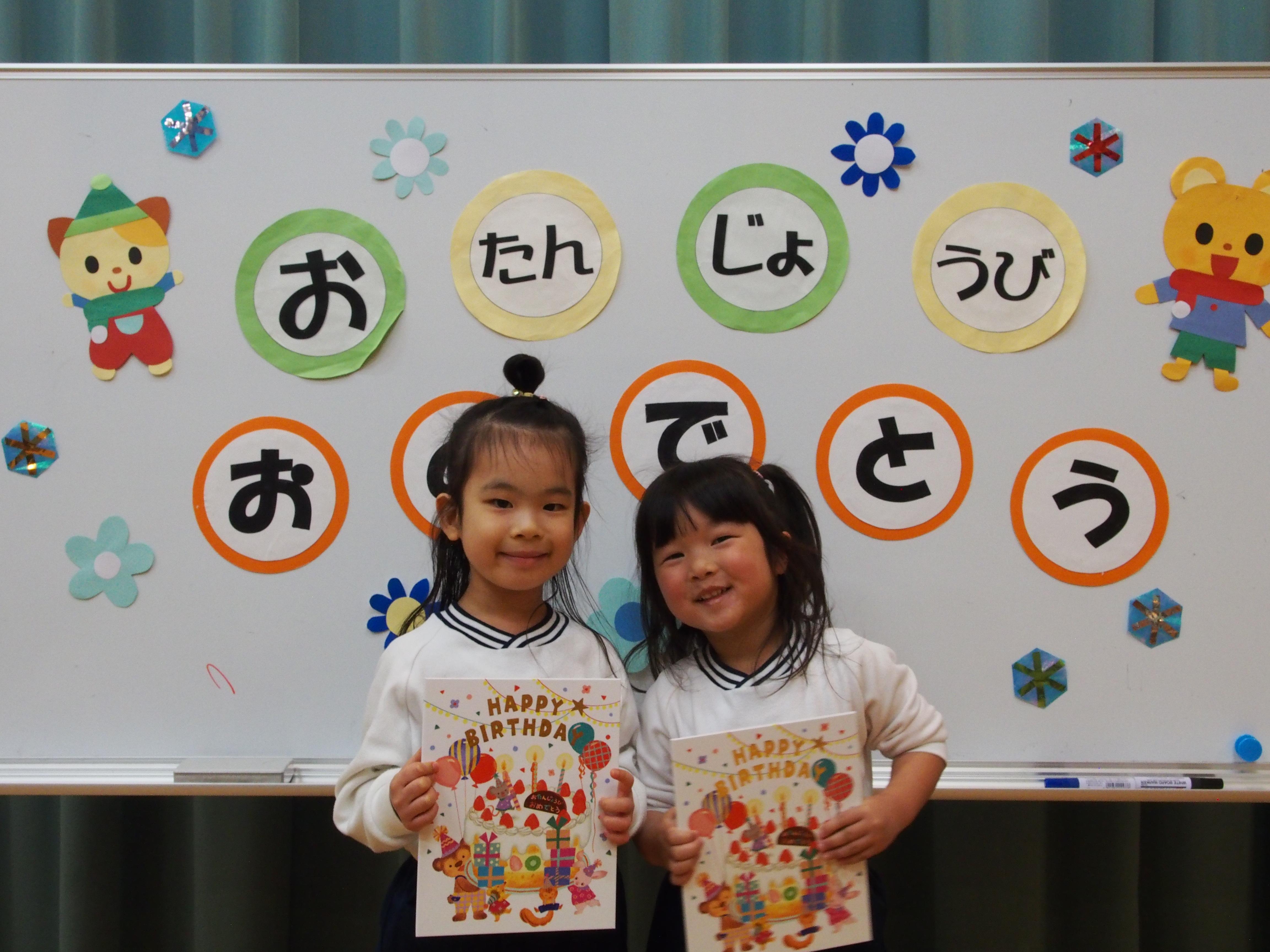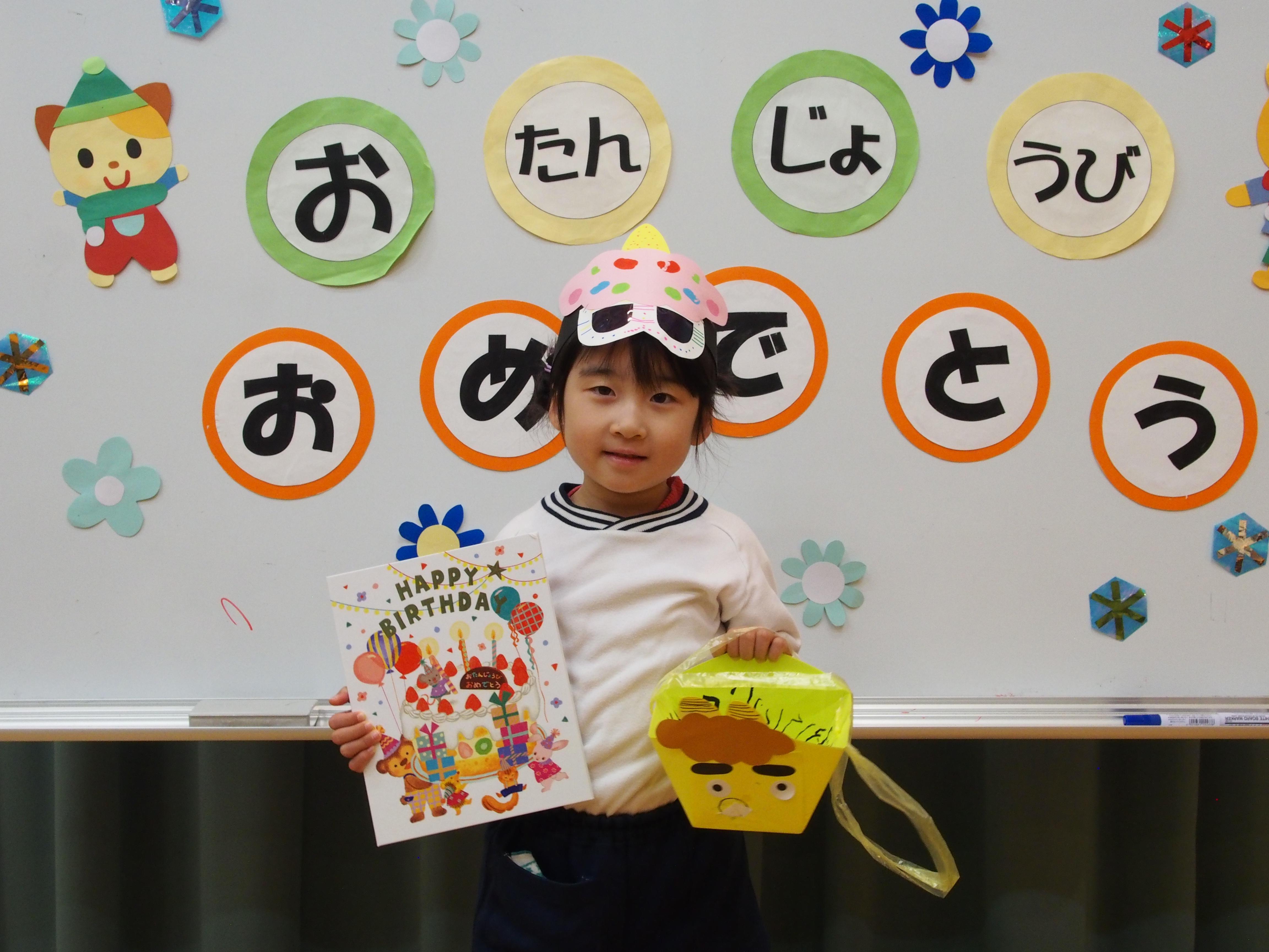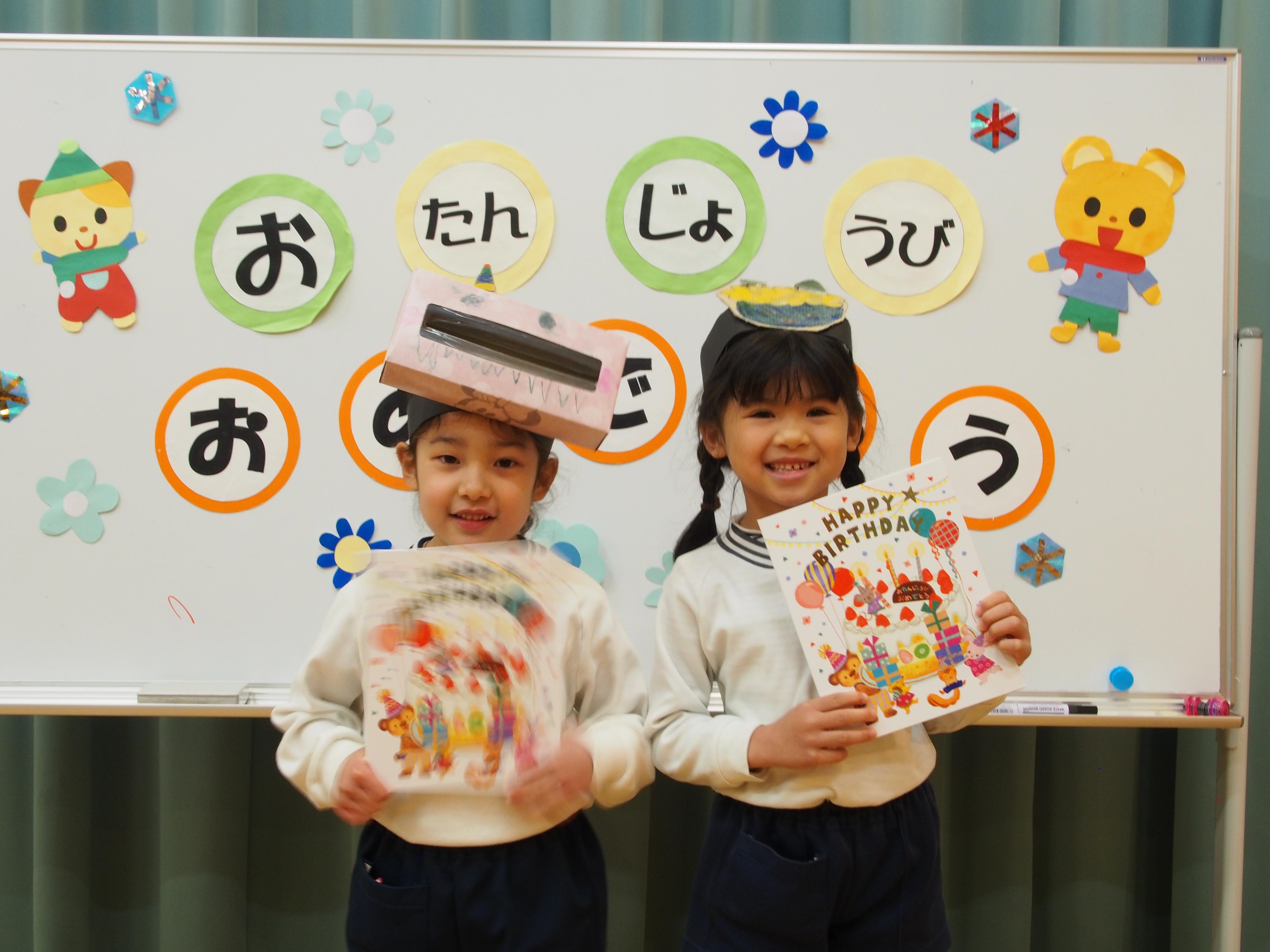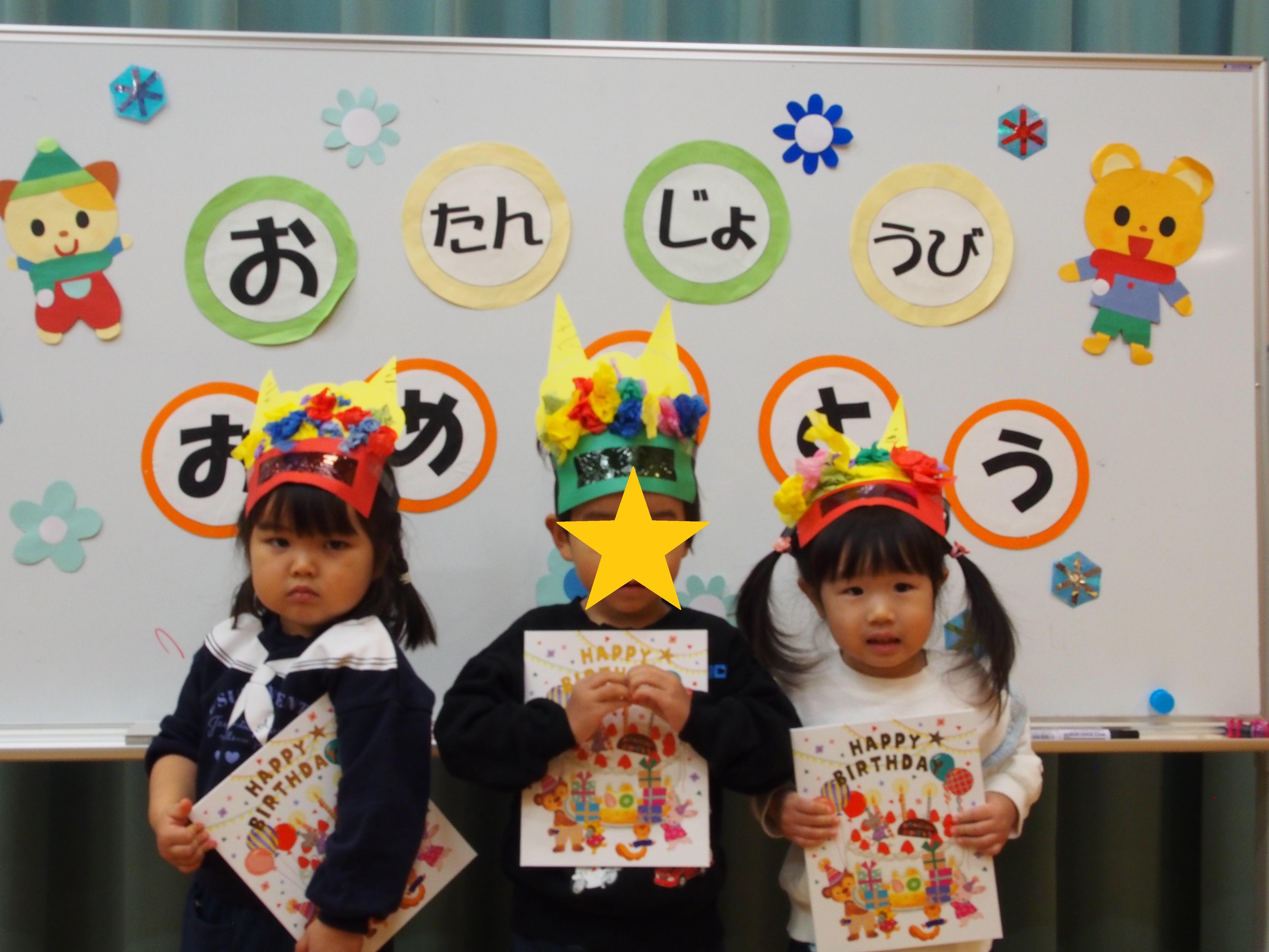 2月の誕生児は12名、インタビューでは、名前や年齢に加えて、好きなお寿司や海苔巻きの具材を言うことができました。素敵な鬼のお面をつけて参加してくれたお友だちです!