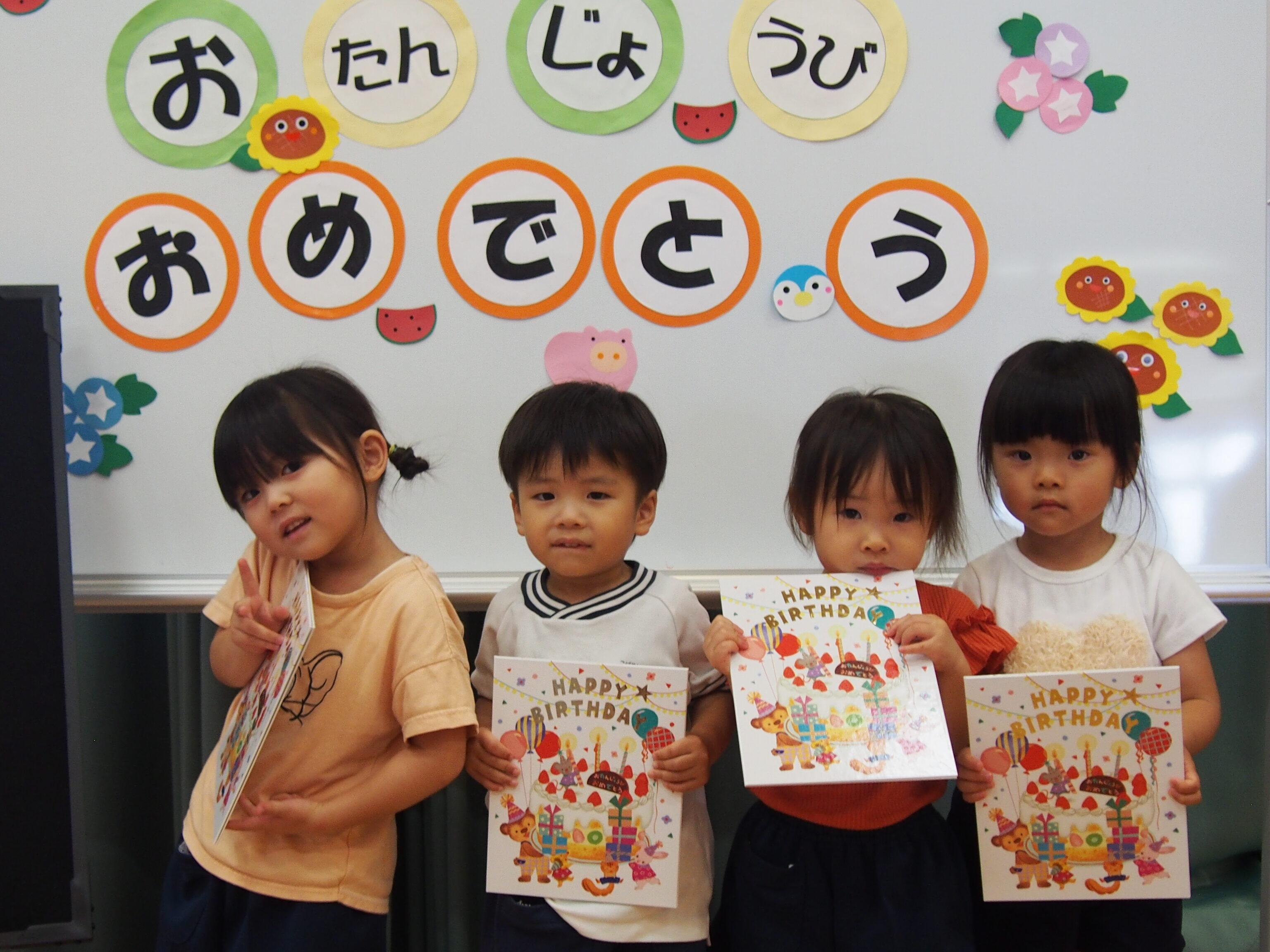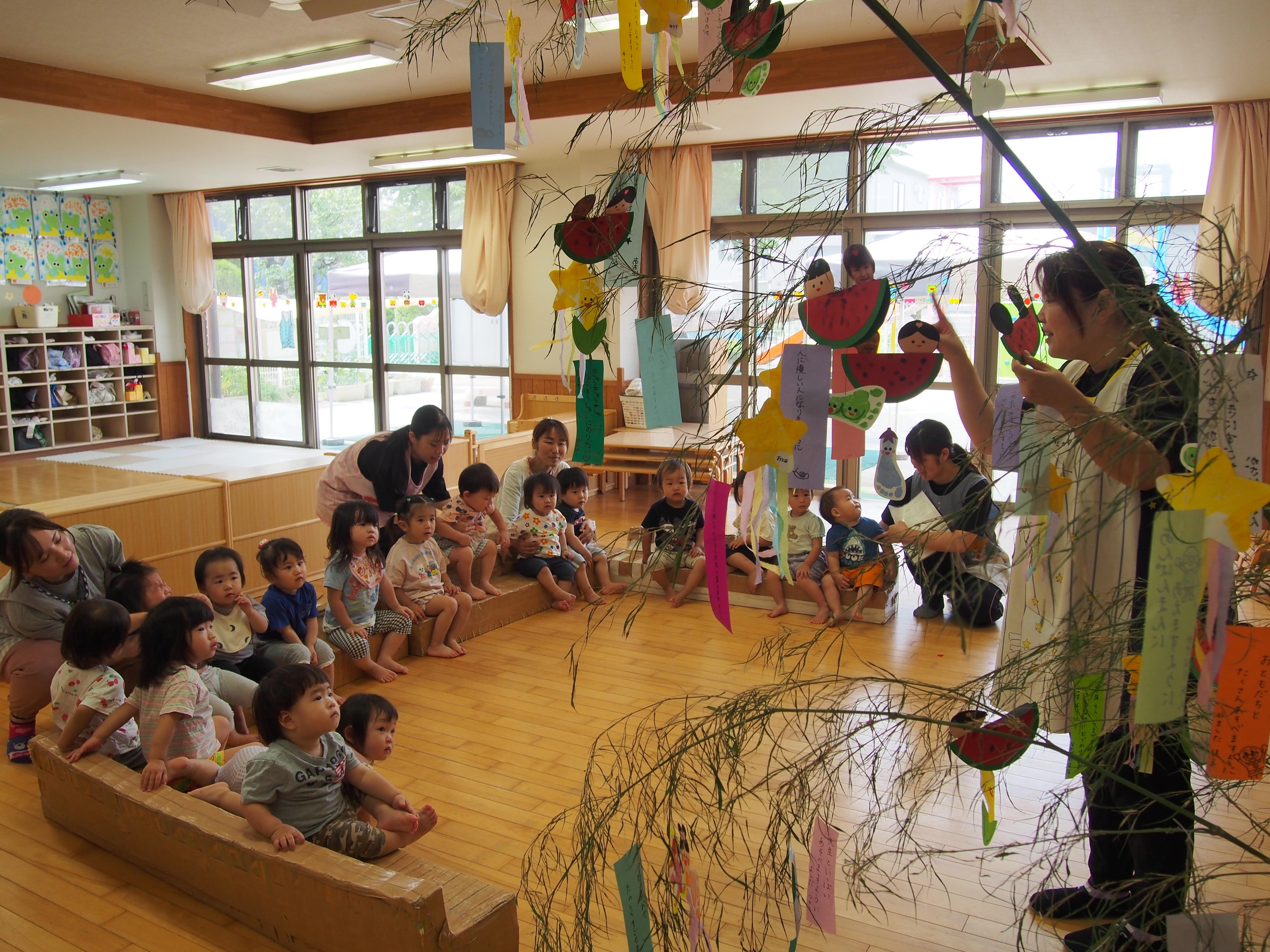 7月は、七夕会ということで、笹飾りに囲まれた素敵な会場の中で皆でお祝いしました。お歌を歌ったり、パネルシアターを観たり七夕の雰囲気を感じながら楽しむことができましたね。